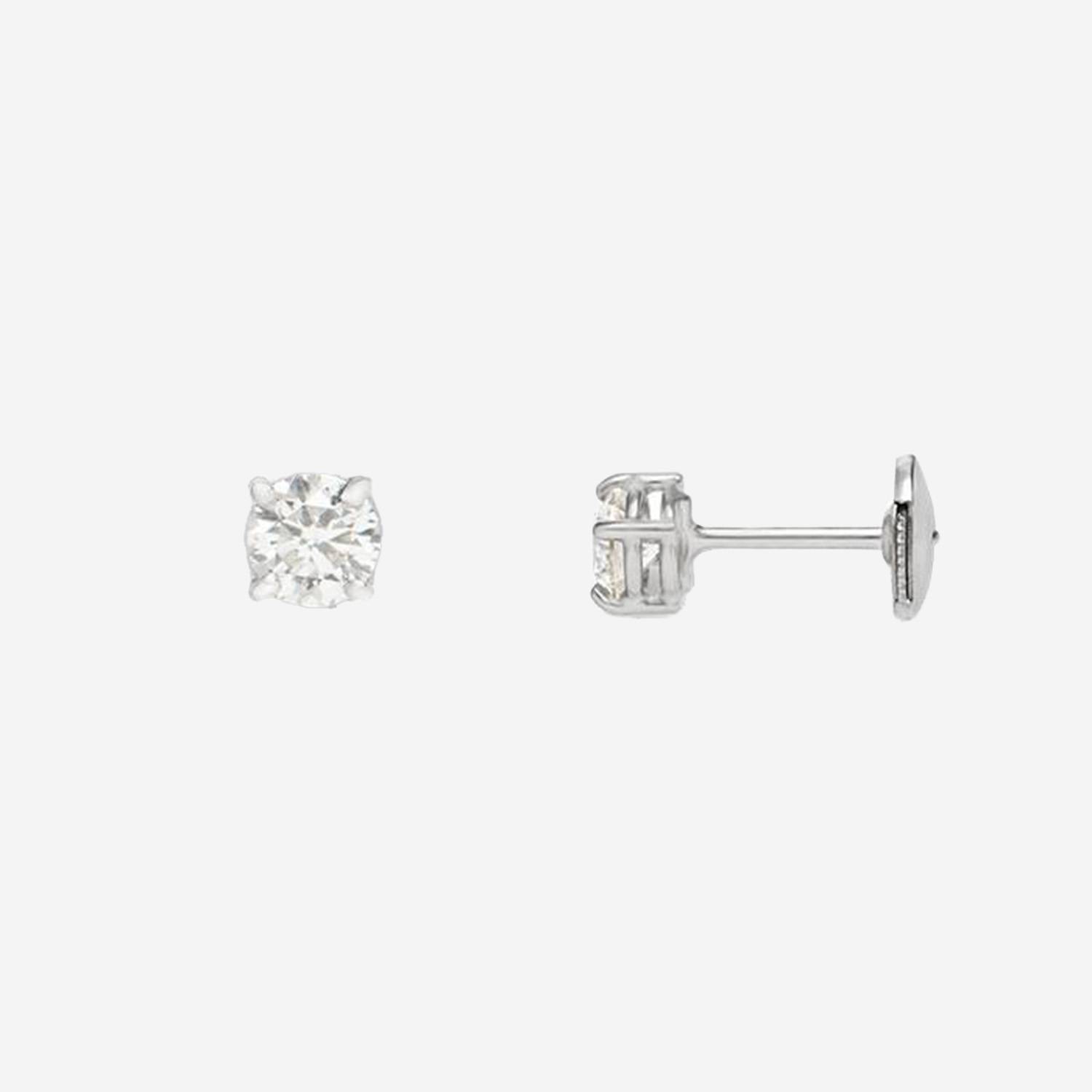 Élégante paire de puces d'oreilles en or blanc et diamants, composée de 2 très beaux diamants de taille brillant au total 1 carat.