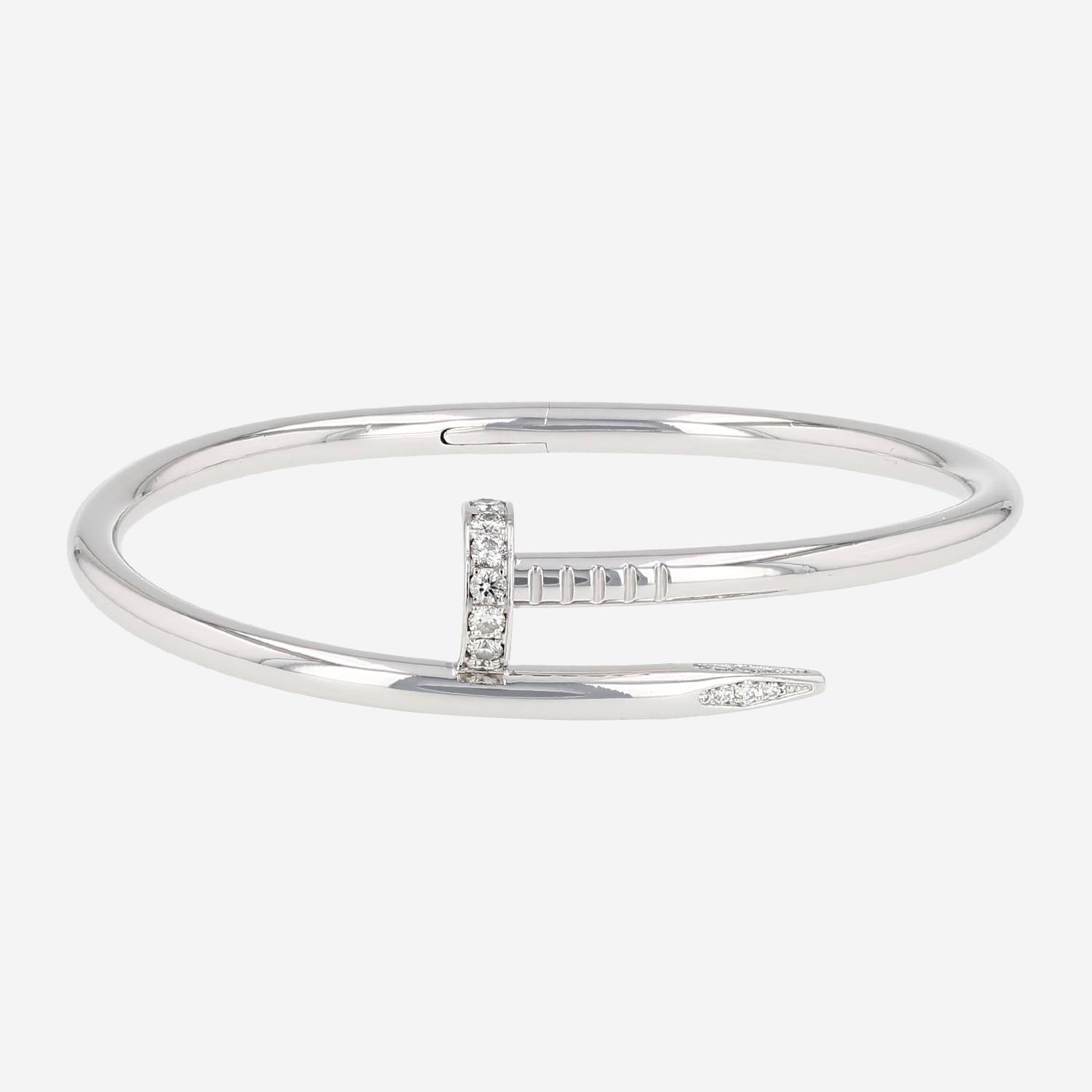 Bracelet Cartier Juste un clou en or blanc et diamants, figurant un ravissant clou stylisé en or blanc partiellement serti de diamants de taille brillant de 0.58 carat au total.