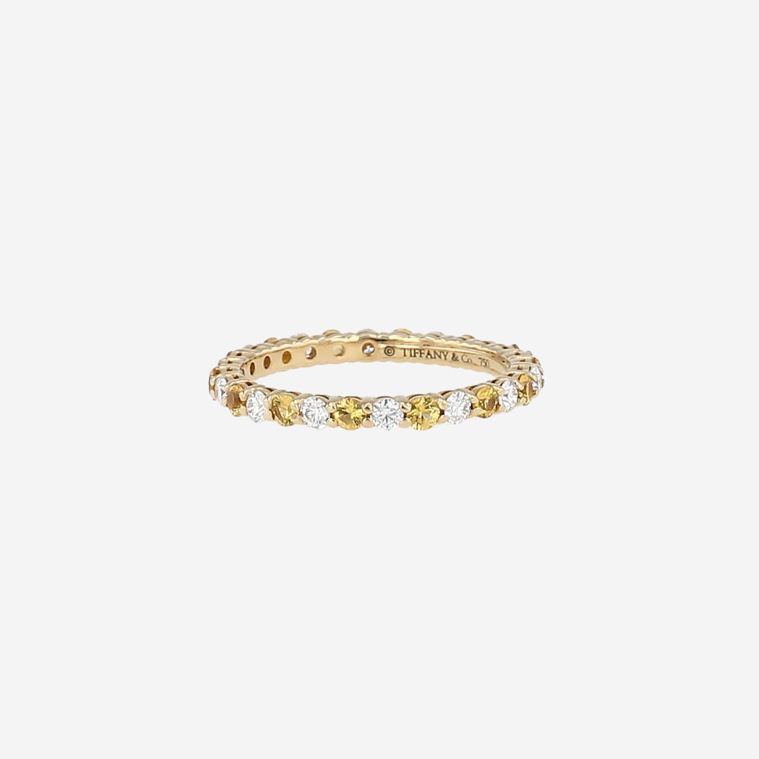 Alliance Tiffany Co en or jaune, en diamants, et en saphirs jaunes, composée d'une alternance de diamants de taille brillant d'environ 0.40 carat au total, ornée de saphirs de couleur jaunes de taille brillant pesant environ 0.42 carat au total.