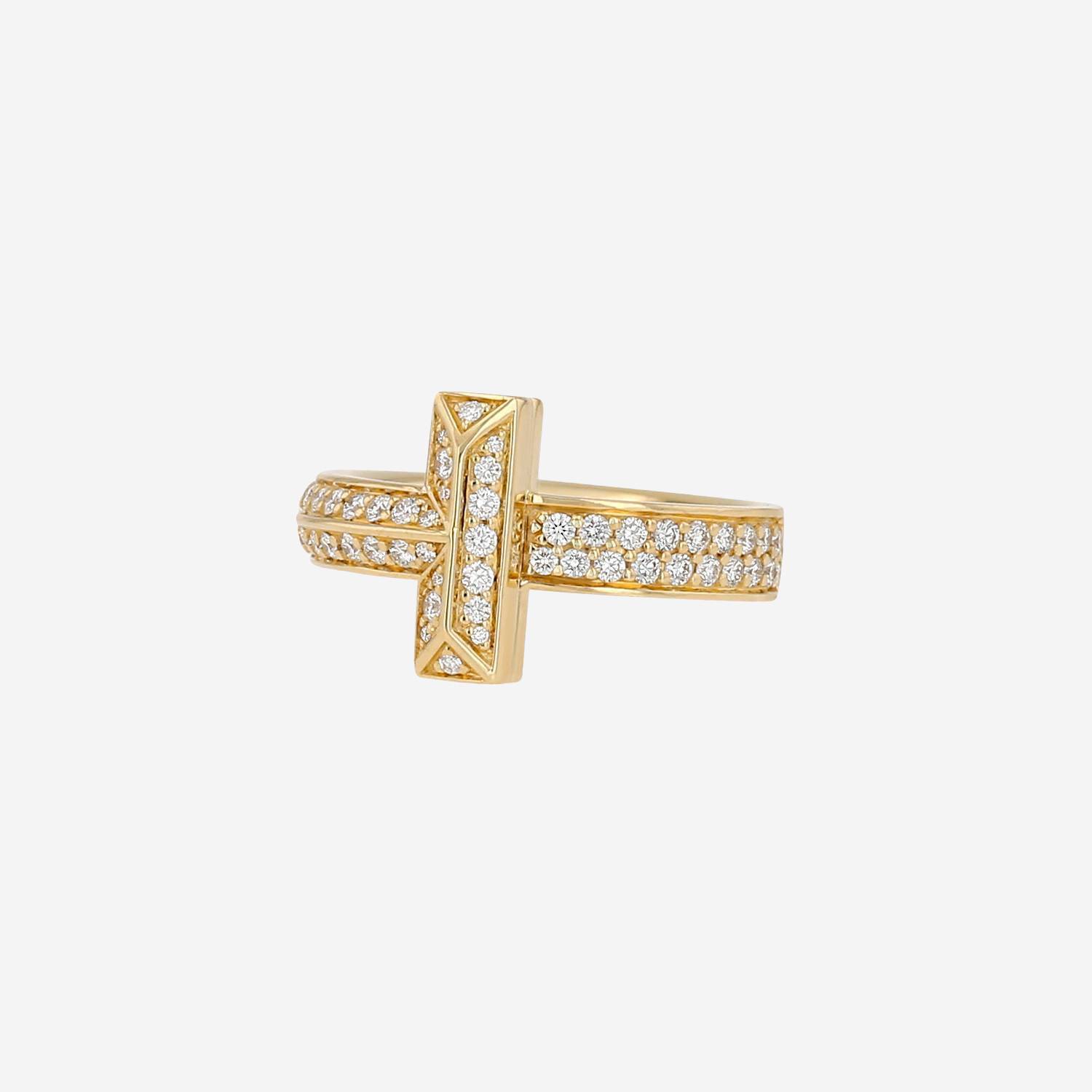 Bague Tiffany Co T1 grand modèle en or jaune et diamants, composée d'un anneau en or jaune délicatement serti de diamants de taille brillant de 0.58 carat au total, ornée de la lettre T.