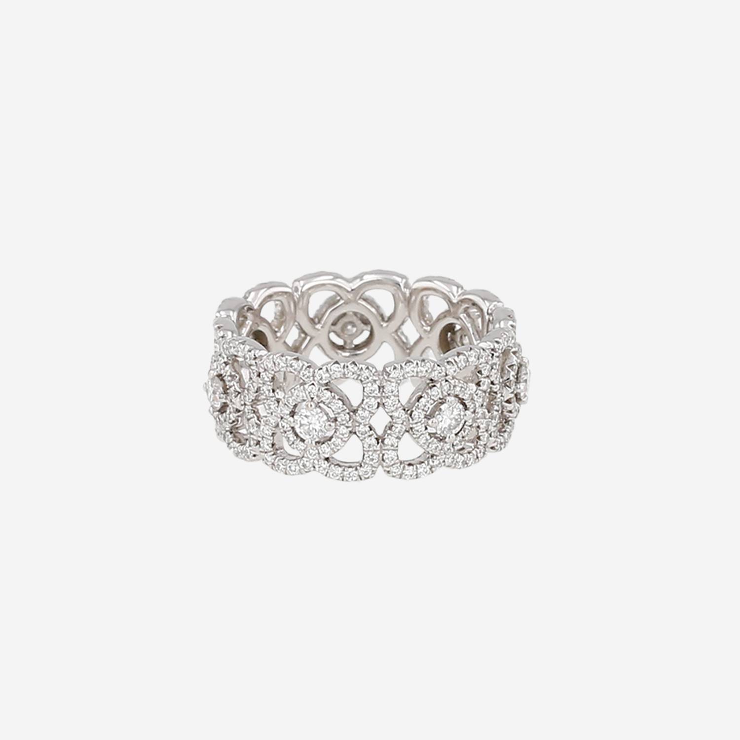 De Beers Enchanted Lotus ring in white gold and diamonds, composed of of a series of hemstitched flowers completely set with of brilliant cut diamonds about 1.2 carat.