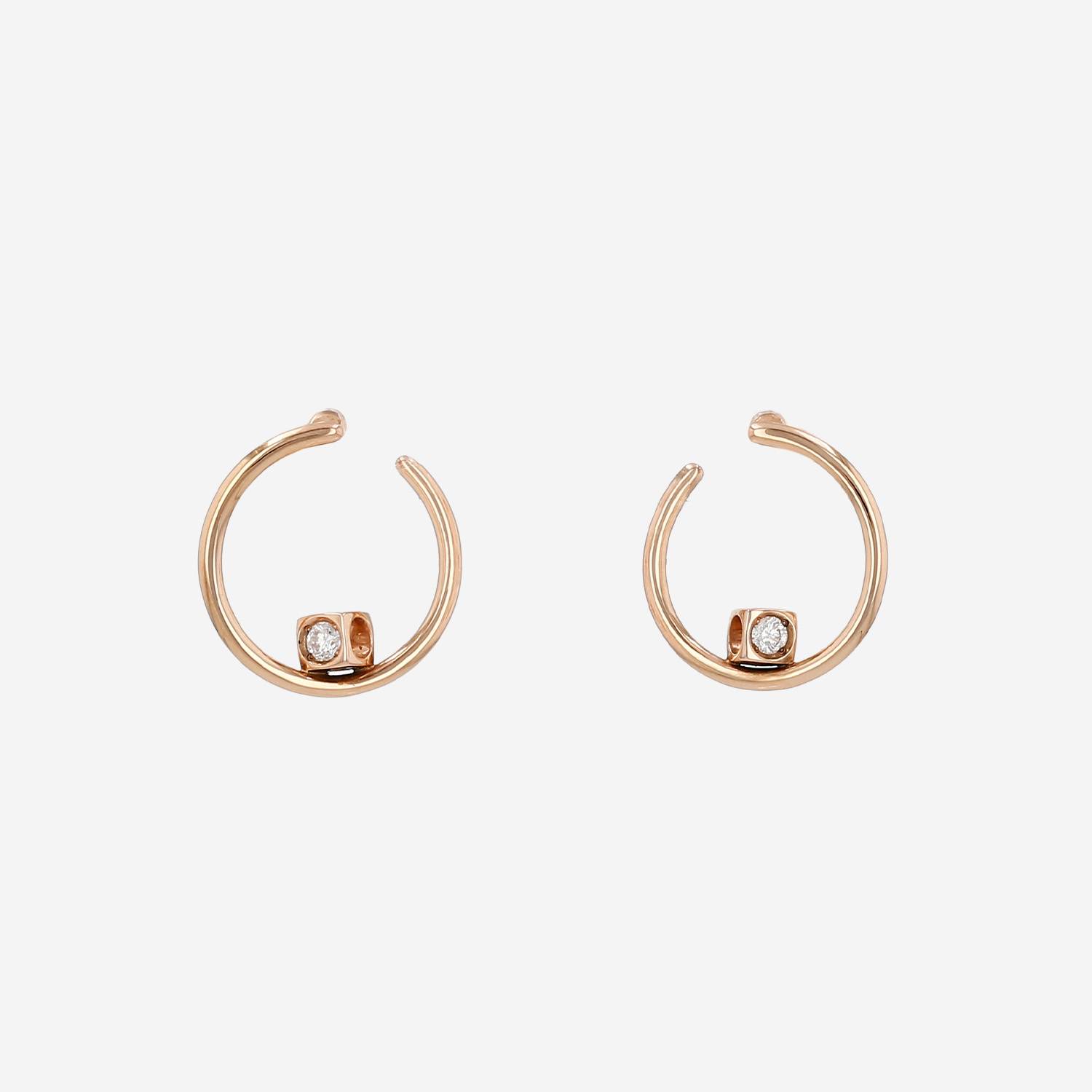 Dinh Van Le Cube Diamant hoop earrings in pink gold and diamonds, composed of of delicate rings in pink gold, decorated with of small hemstitched cubes to the base enhanced of diamonds brilliant cut.