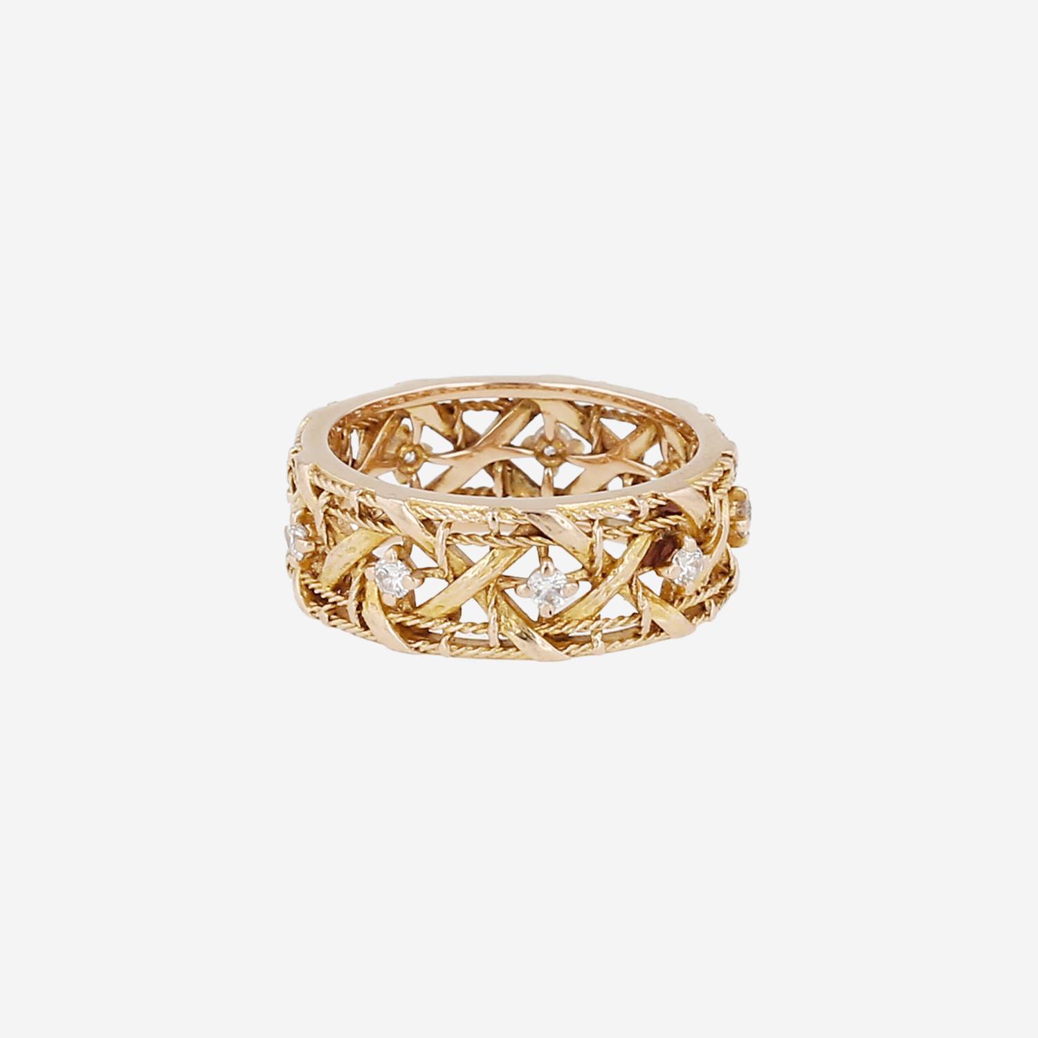 Superb Dior My Dior medium model ring in pink gold and diamonds, composed of one wonderful hemstitched sleeve in pink gold, decorated with of diamonds brilliant cut, enhanced of delicate twisted interwoven links in pink gold.