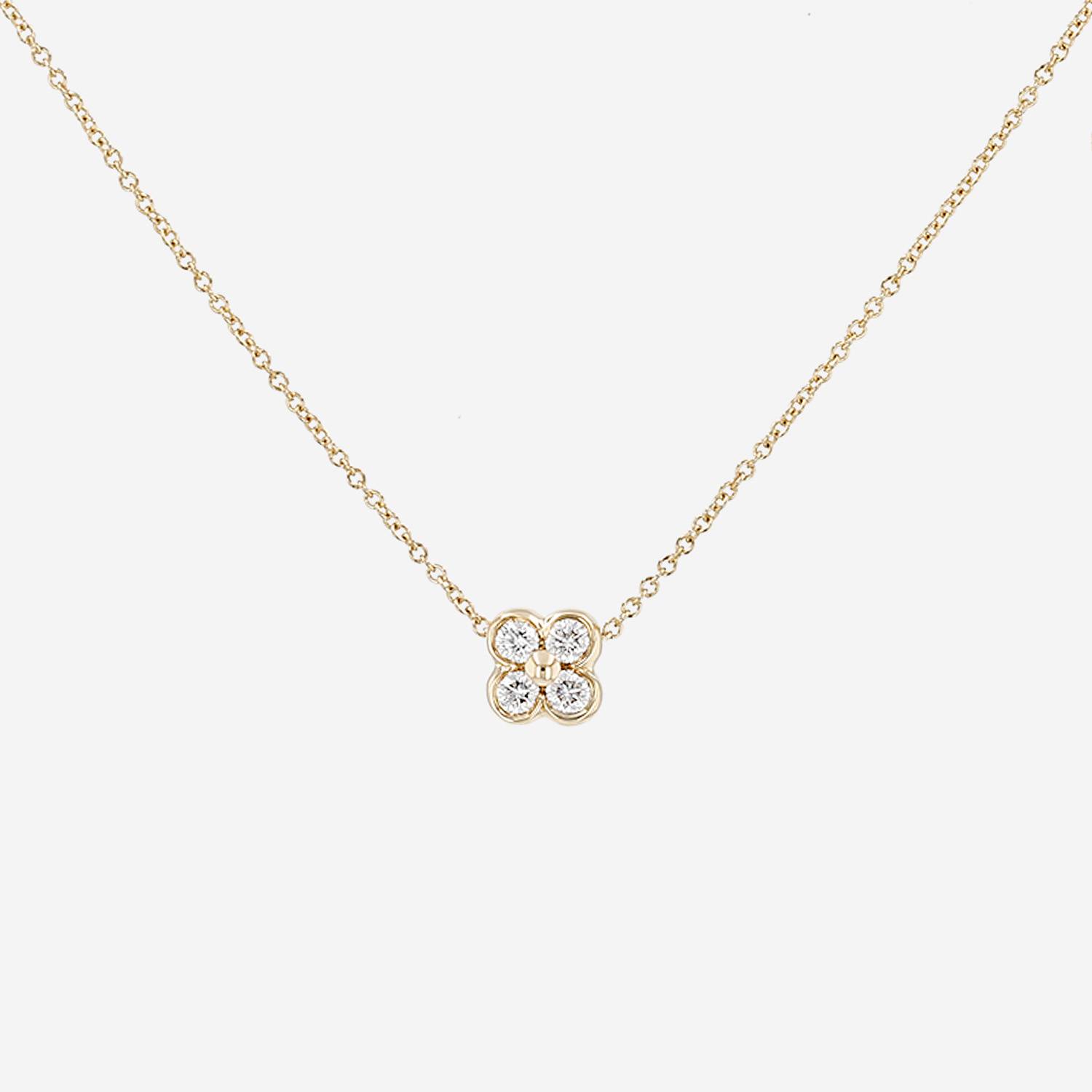 Tiffany Co necklace in yellow gold and diamonds, including one delicate flower in yellow gold delicately set with of brilliant cut diamonds about 0.20 carat.