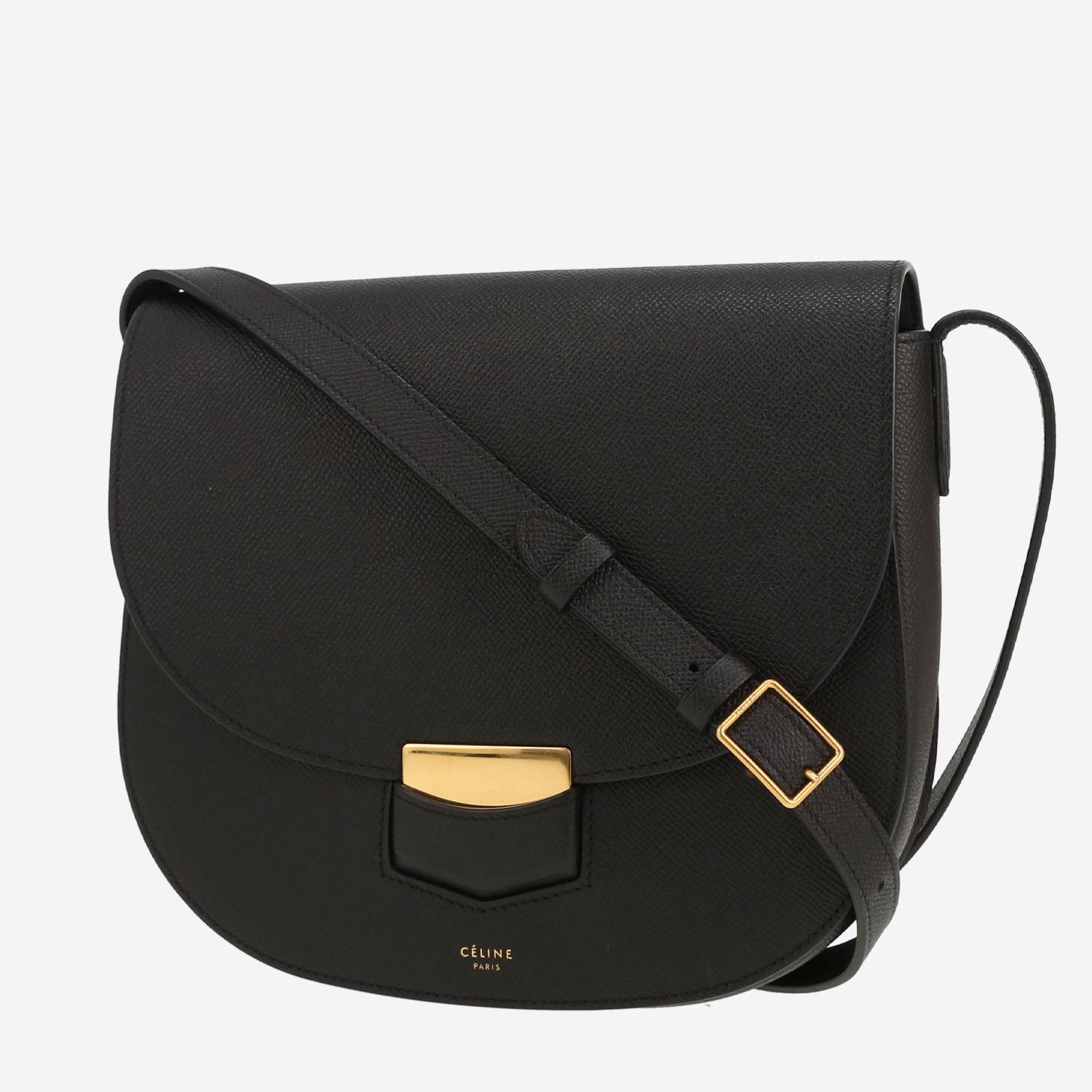 Wonderful Celine Trotteur shoulder bag in black grained leather, hardware in gilt metal, one adjustable strap in black leather allowing the bag to be worn on the shoulder or accross the body.