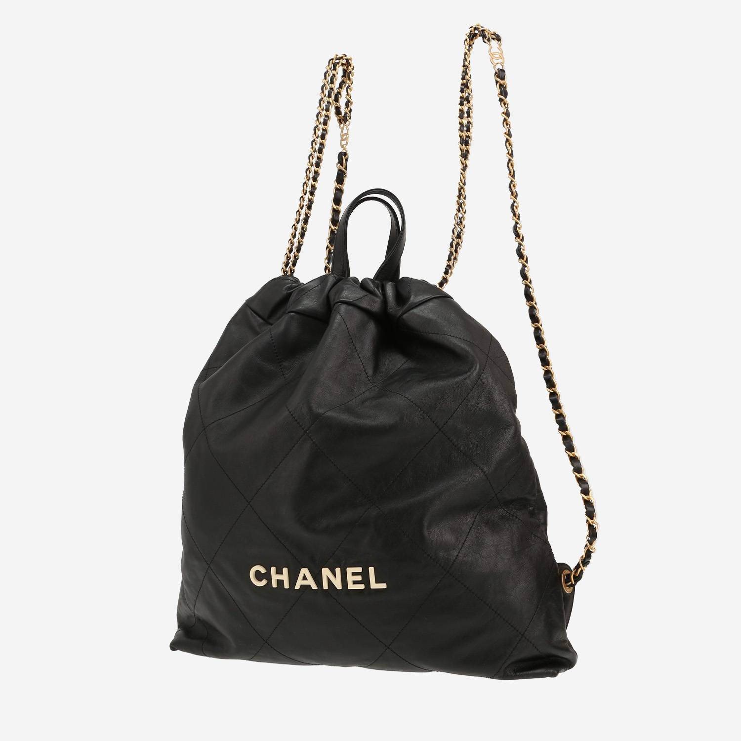 Superb Chanel 22 backpack in black leather, hardware in gilt metal, double handle in black leather, double chain strap in gilt metal interwoven with black leather allowing the bag to be worn in the hand, on the shoulder or on the back.