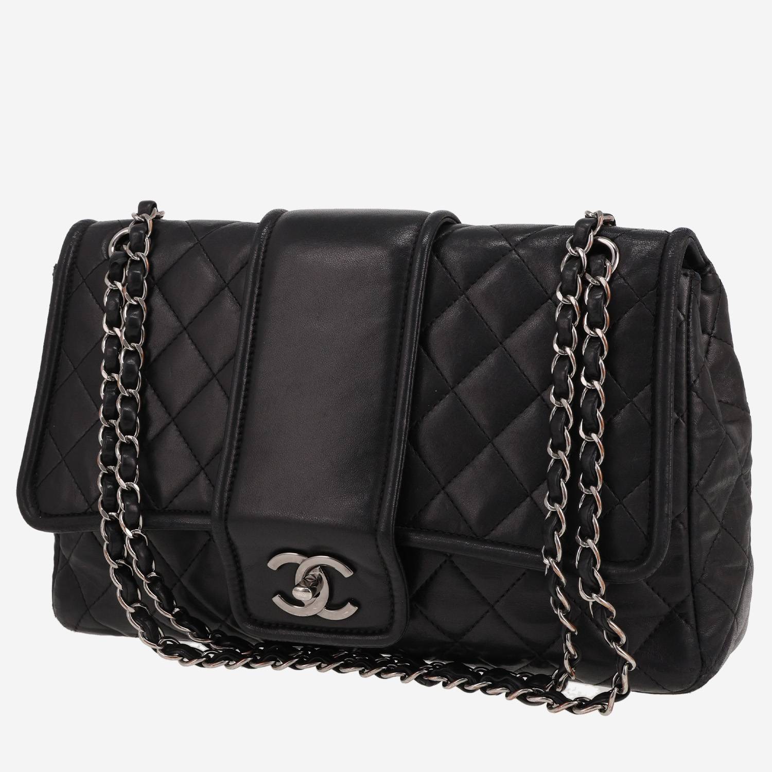 Wonderful Chanel shoulder bag in black quilted leather, hardware in silver metal, one convertible chain strap in silver metal interwoven with black leather allowing the bag to be worn in the hand or on the shoulder or accross the body.