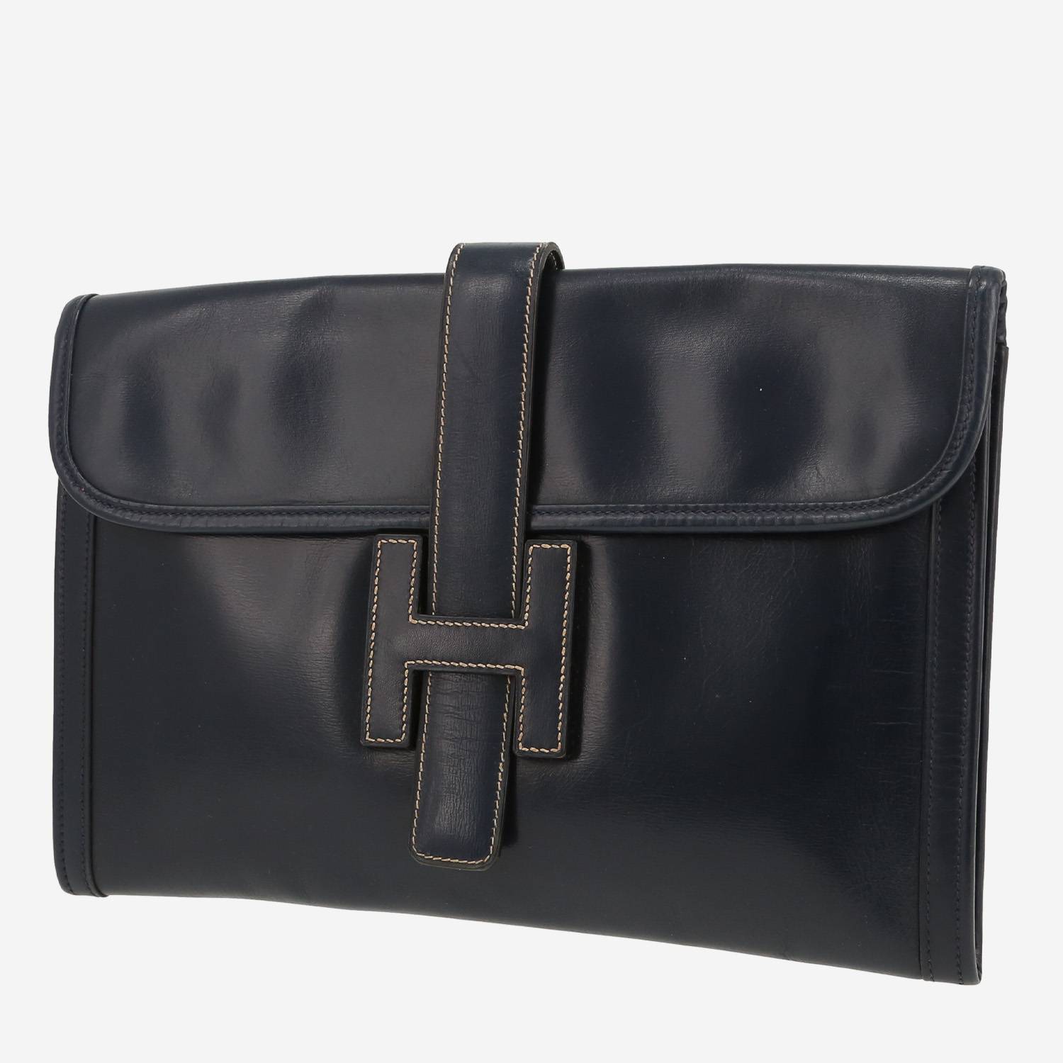 Wonderful Hermès Jige pouch in navy blue box leather.