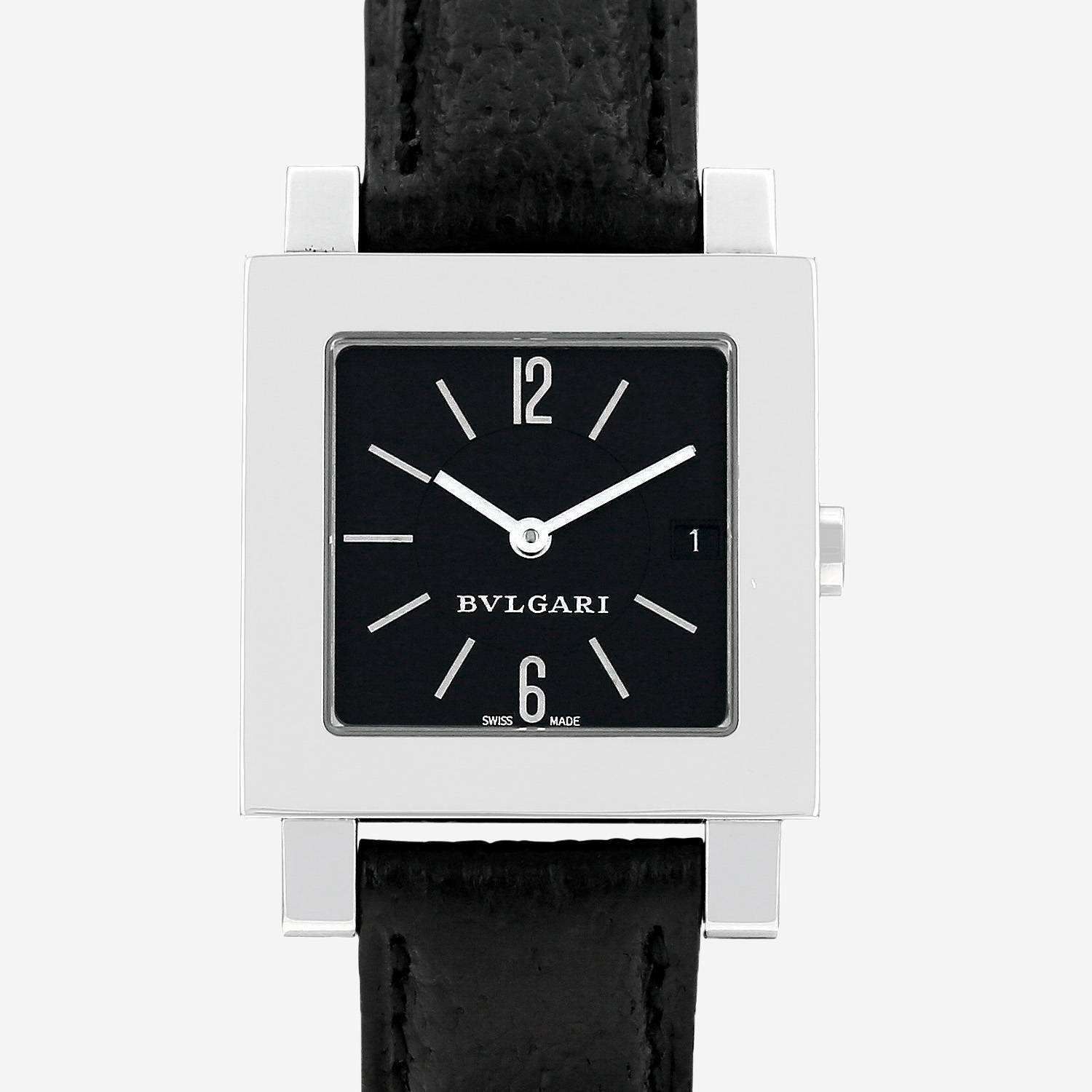 Stainless steel Bulgari Quadrato wristwatch. Square case in stainless steel, screwed caseback, crown.