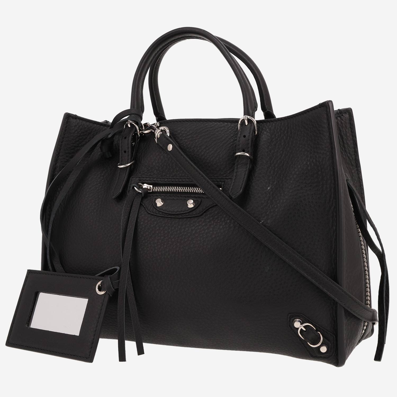 Practical Balenciaga Papier handbag in black leather, hardware in silver metal, double handle in black leather, one removable strap in black leather allowing the bag to be worn in the hand or on the shoulder or accross the body.