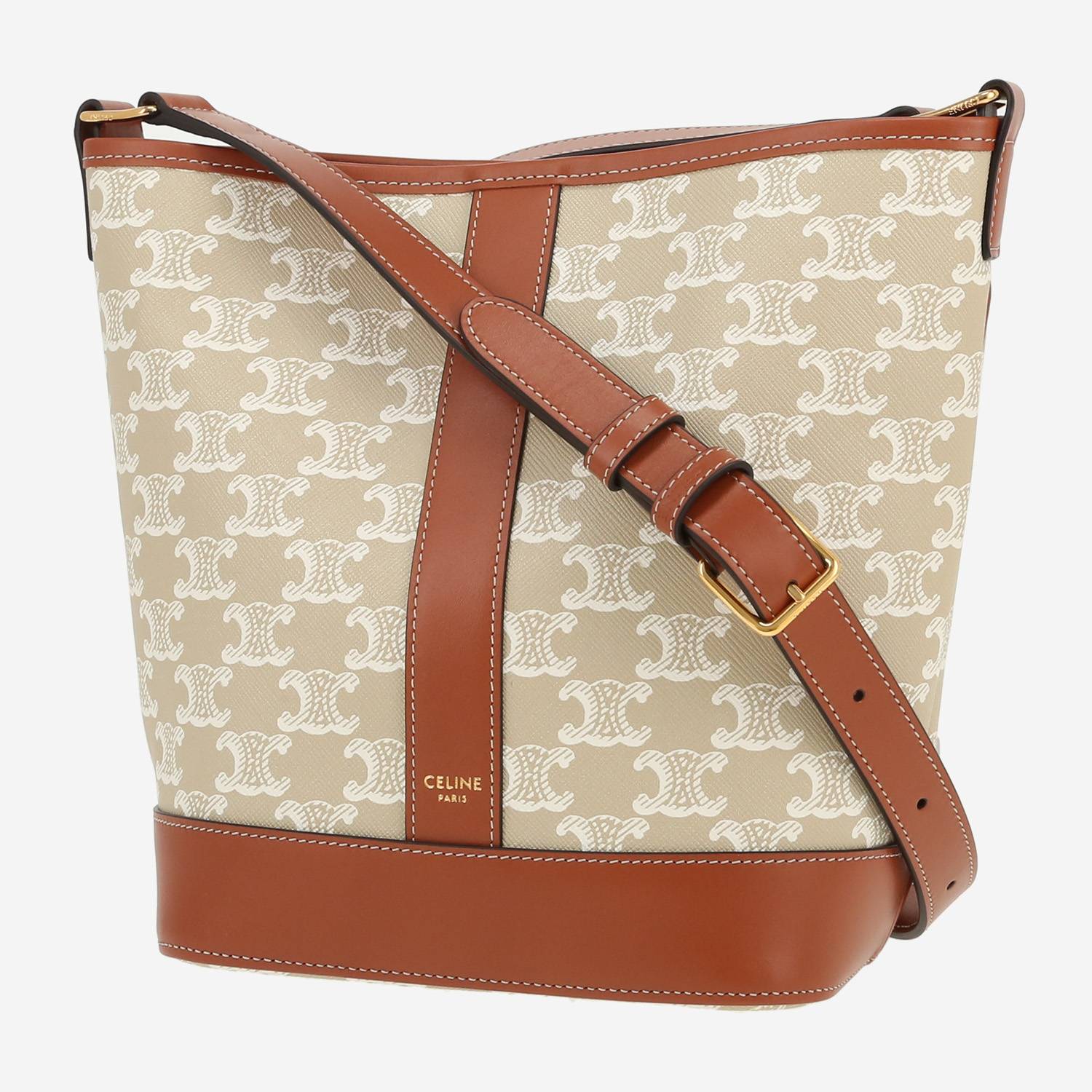 Celine Seau small model shoulder bag in white "Triomphe" canvas and brown leather Replica Handbag and Jewelry Shopping Ref: 42 76 05