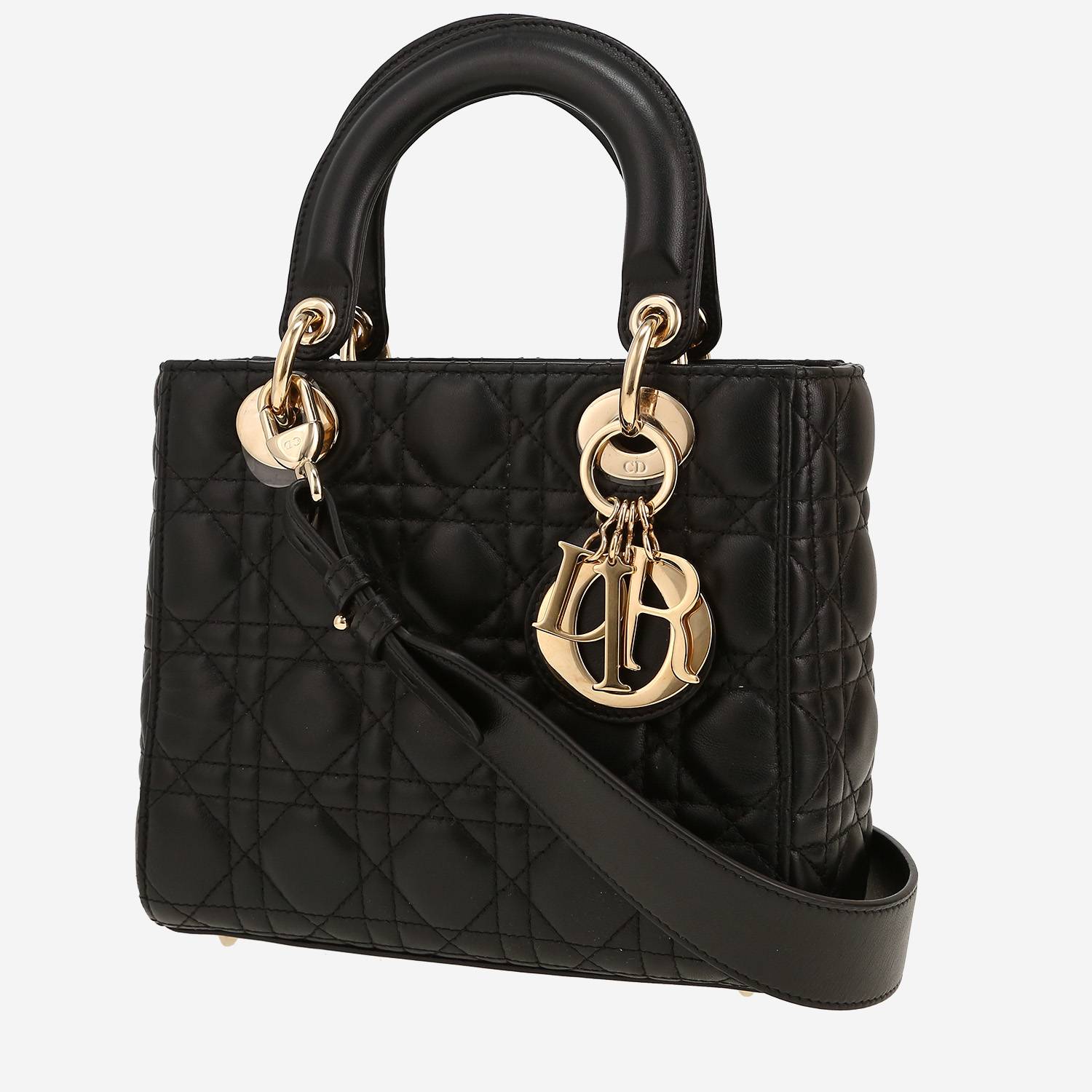 Unavoidable Dior Lady Dior handbag in black leather cannage, hardware in gilt metal, double handle in black leather, black leather removable strap to be worn accross the body allowing the bag to be worn in the hand or on the shoulder or accross the body.