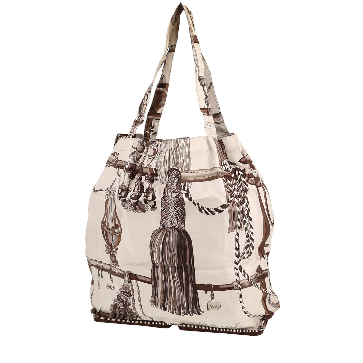 Practical Hermès Silky Pop - Shop Bag shopping bag in beige and brown printed canvas, hardware in palladium metal, double handle in beige canvas with pattern allowing the bag to be worn in the hand or on the shoulder.