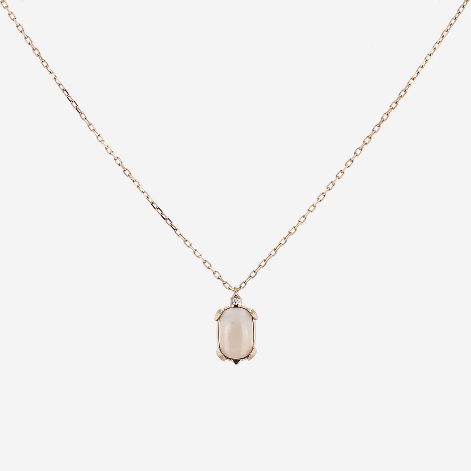 Cartier necklace in pink gold, in diamond, and in mother of pearl, including one turtle in pink gold, in mother of pearl delicately set with one diamond, hold by one in pink gold forcat chain.