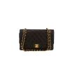 Magnífico bolso de mano Chanel Timeless Classic de cuero acolchado negro, adorno en metal dorado, una asa en cadena de metal dorado entrelazada de cuero negro para llevar en la mano o al hombro.