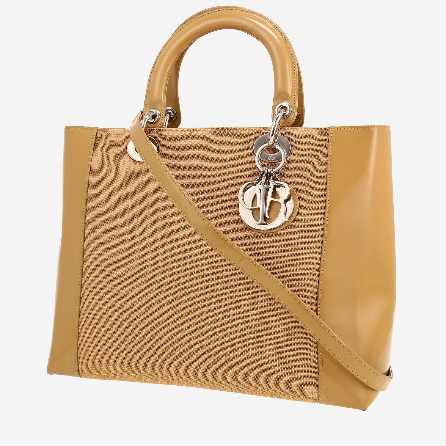 Bolso de mano Dior Lady Dior en charol beige y lona beige Ref Replica Handbag and Jewelry Shopping: 42 39 42