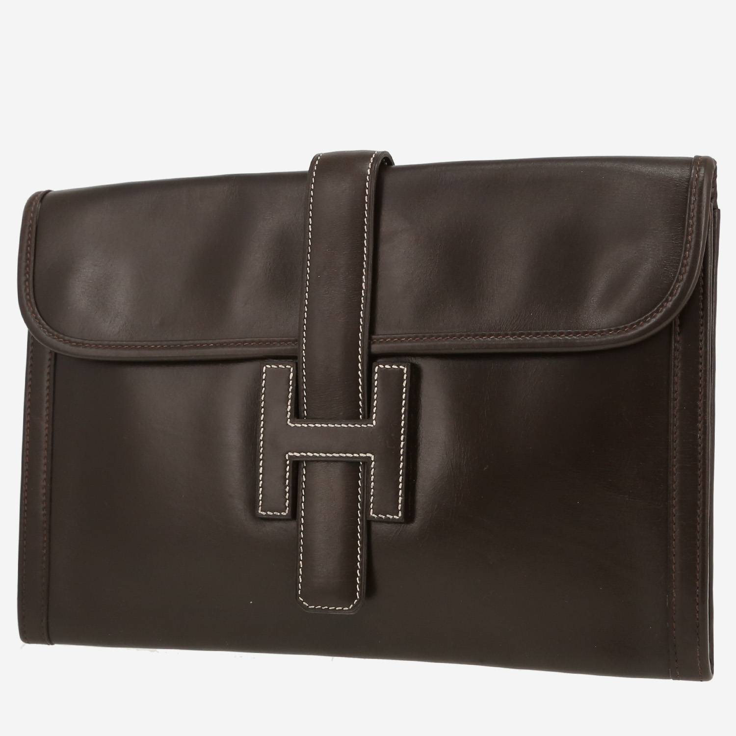 Magnífico bolsito de mano Hermès Jige de cuero box marrón.