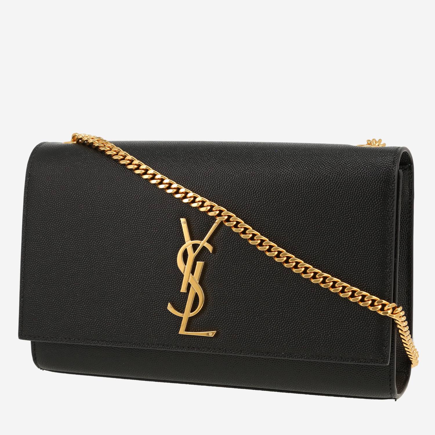 Bolso bandolera Saint Laurent Kate modelo mediano de cuero granulado negro, adorno en metal dorado, una asa en cadena ajustable de metal dorado para llevar en la mano o colgado al hombro o cruzado.