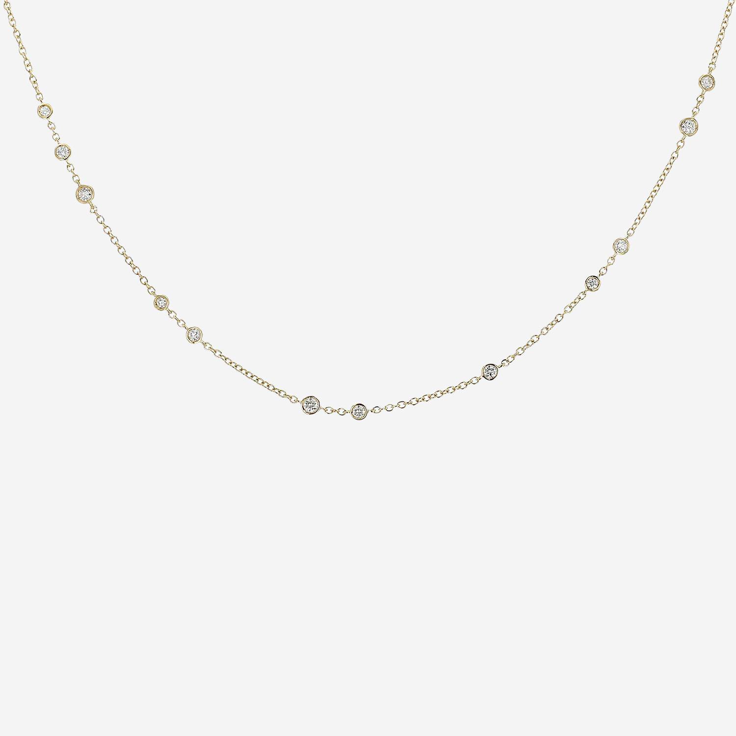 Collar de oro amarillo y diamantes, compuesto de una cadena de eslabones redondos de oro amarillo delicadamente engastada cerrado de diamantes de talla brillante 0.66 quilate de en total.