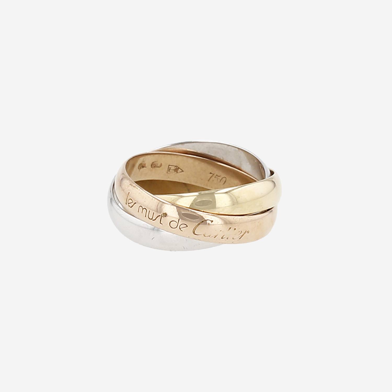 Intemporal sortija Cartier Trinity "les Must de Cartier" modelo mediano de 3 oros, compuesta de 3 elegantes anillos entrelazados de oro amarillo, de oro rosa y en oro blanco.