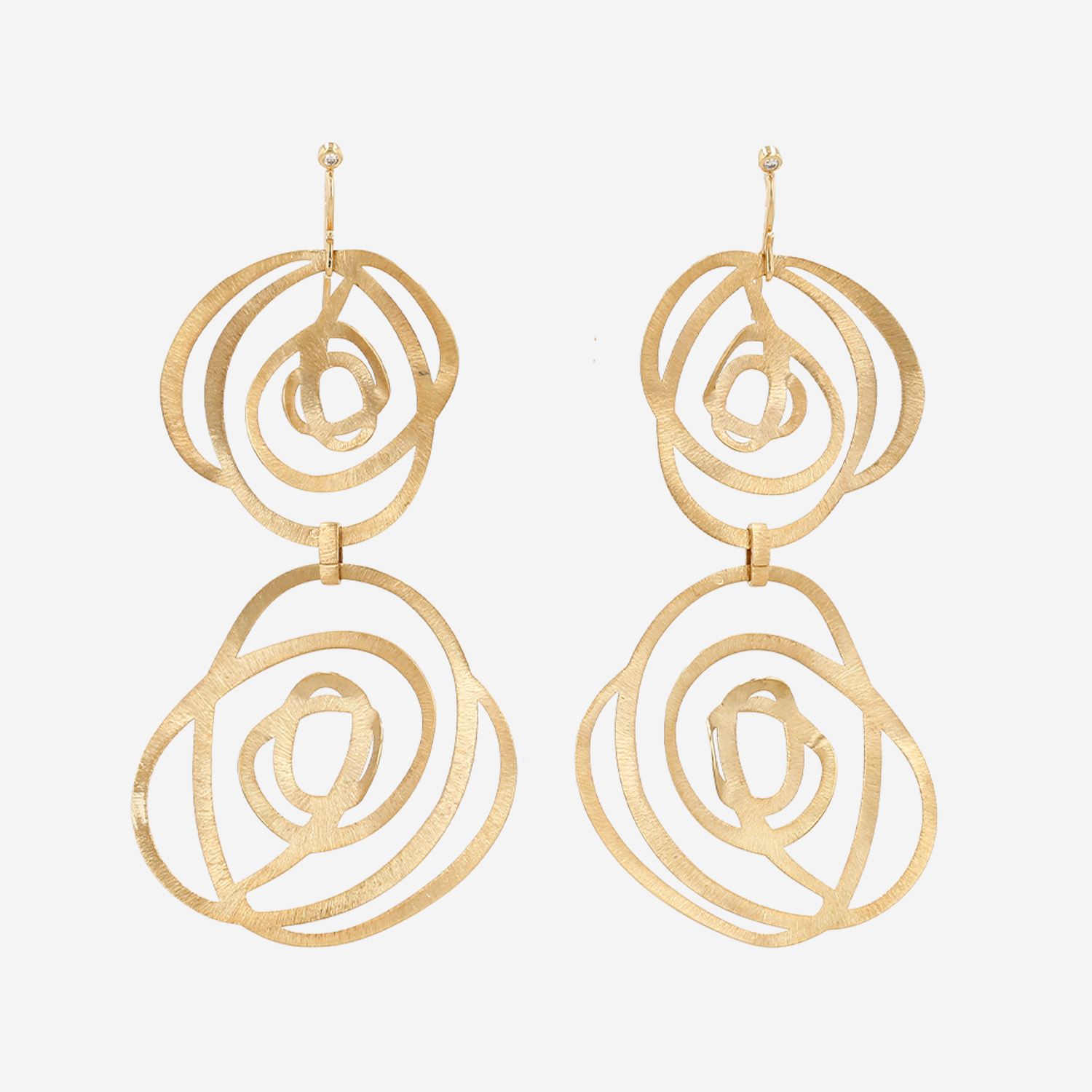 Pendientes H. Stern Grupo di Corpo modelo mediano de oro amarillo y diamantes, compuestos de una superposición de bonitas flores geométricas caladas de oro amarillo cepillado, realzados de 2 pequeños diamantes de talla brillante.