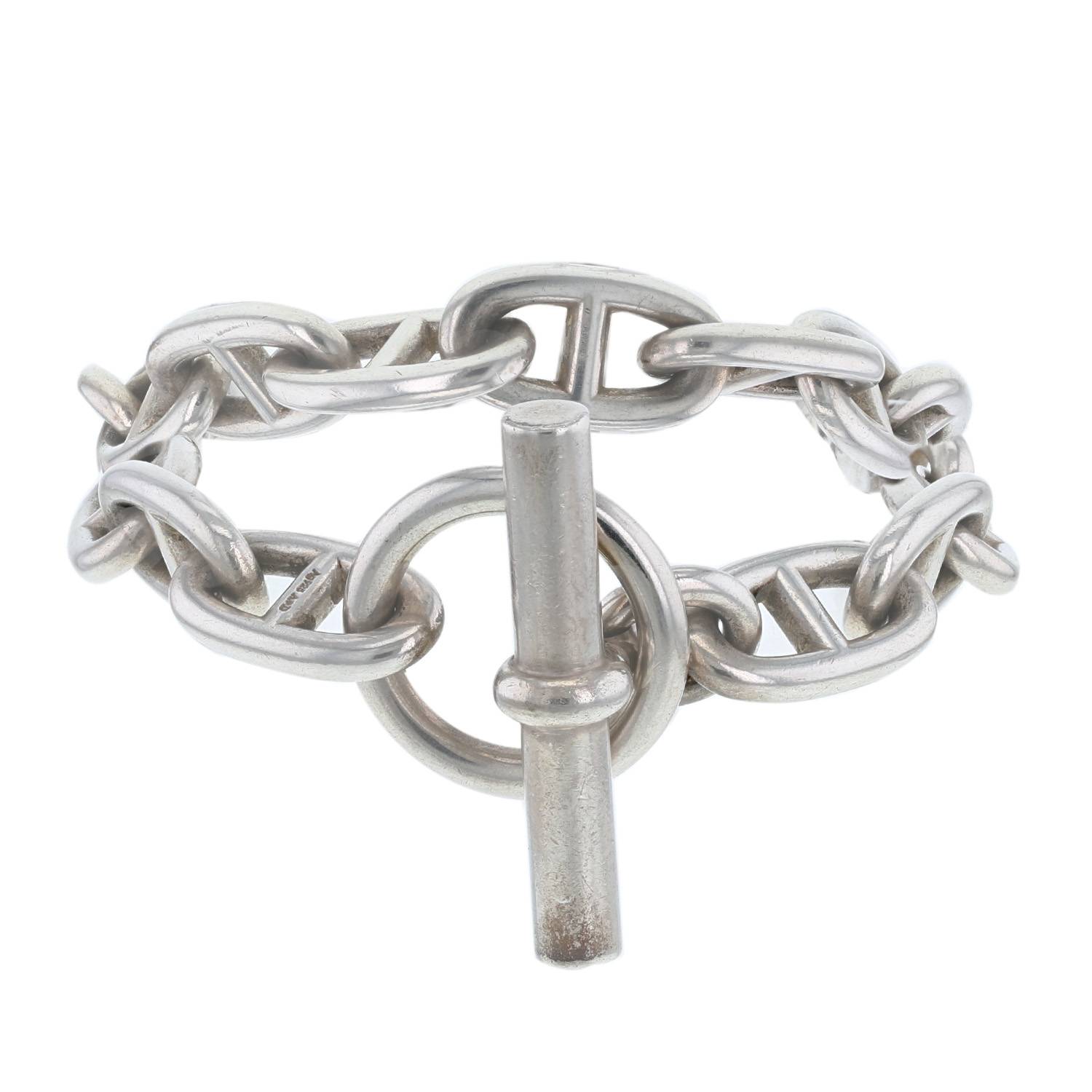 Intemporal brazalete Hermès Chaine d'Ancre modelo grande de plata, compuesto de una sucesión de elegantes eslabones ovalados calados de plata.