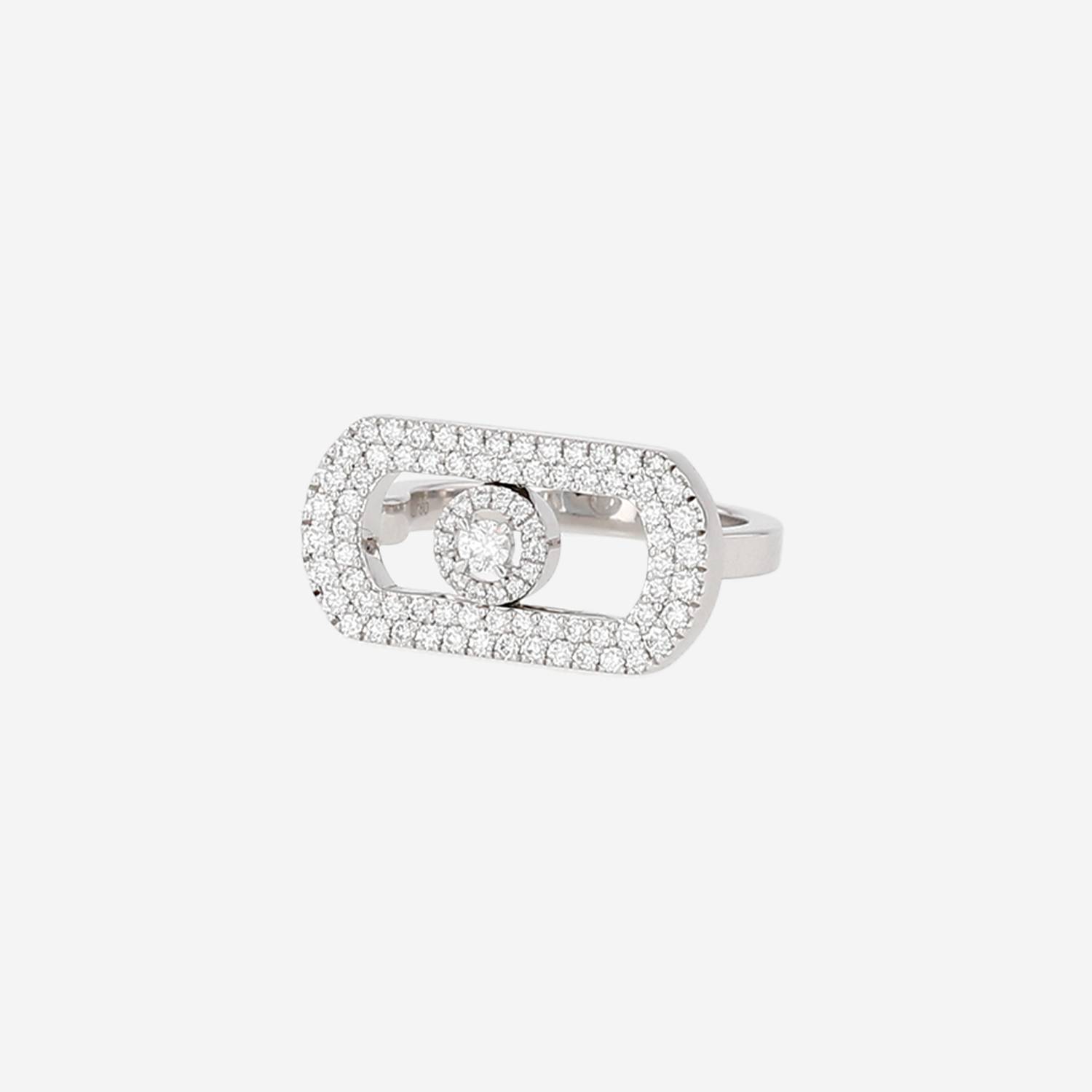 Sortija Messika So Move de oro blanco y diamantes, compuesta de un muy bonito diseño ovalado calado elegantemente pavimentado de diamantes de talla brillante, que sujeta en el centro un pequeño diseño movible engastado de diamantes de talla brillante en total 0.60 quilate, realzada de un anillo de oro blanco.