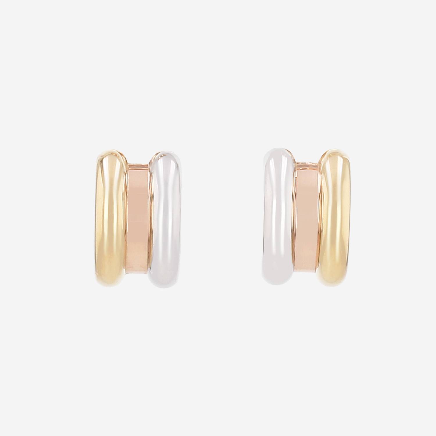 Criollas pequeñas Poiray Symbole de oro blanco, de oro rosa, y en oro amarillo, compuestas de 2 preciosos anillos abombados de oro blanco y de oro amarillo, rodeadas en el centro de un cinta de oro rosa.