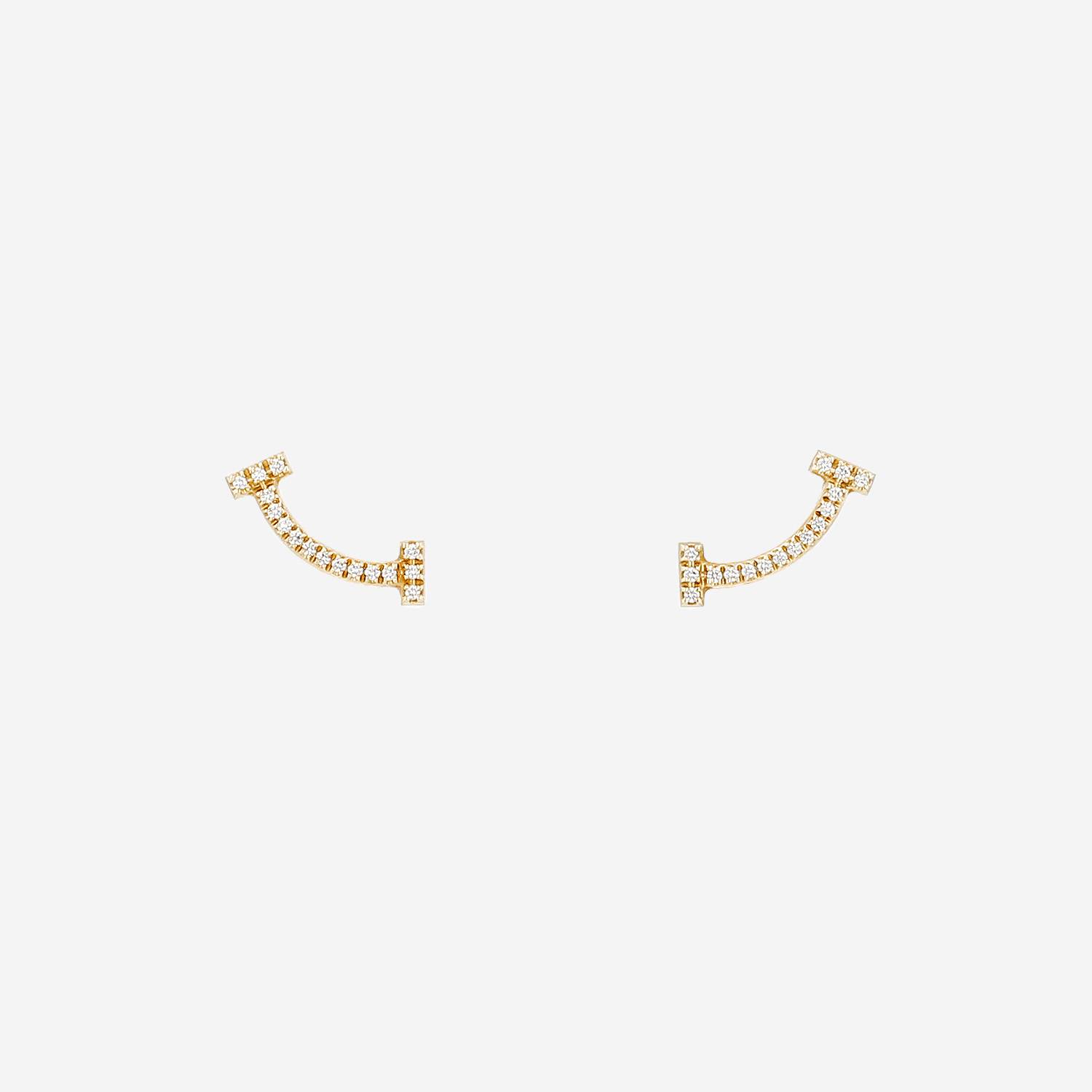 Pendientes Tiffany Co Smile T de oro amarillo y diamantes, compuestos de un diseño estilizando una sonrisa de oro amarillo delicadamente pavimentado de diamantes de talla brillante 0.06 quilate en total.