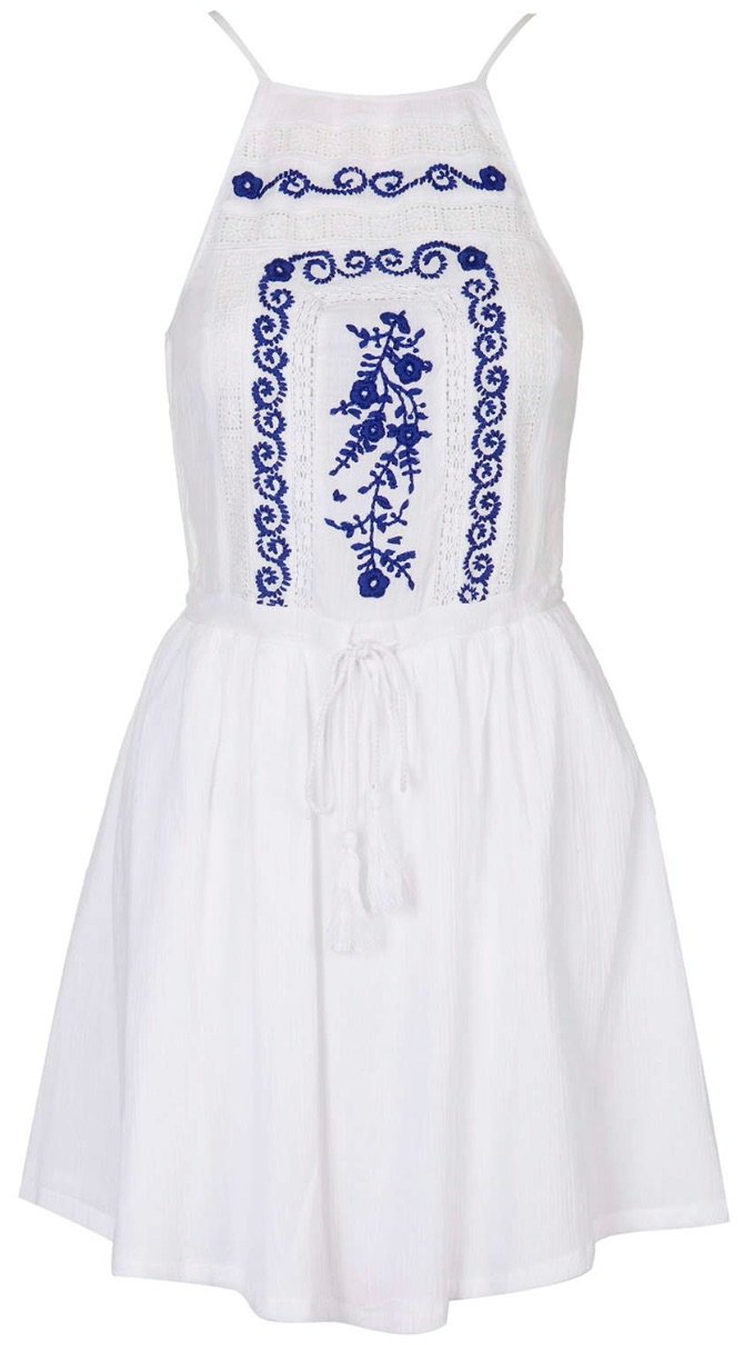 Look at the detail on this dress’ embroidery. Blue flowers contrasted with a bit of white eyelet detail around it? Spring break, festival, or sweltering summer, this is one versatile dress.