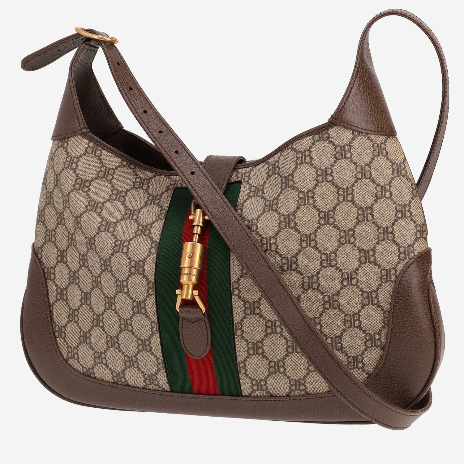 Borsa a tracolla Balenciaga x Gucci Jackie in tela siglata beige e pelle marrone Ref Replica Handbag and Jewelry Shopping: 43 00 04