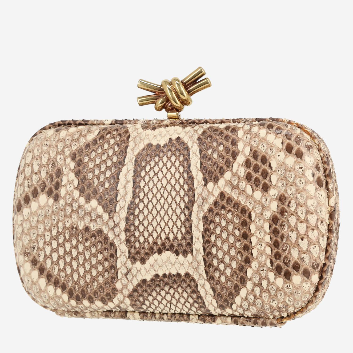 Magnifica pochette Bottega Veneta Knot in pitone beige, inserti in metallo dorato.