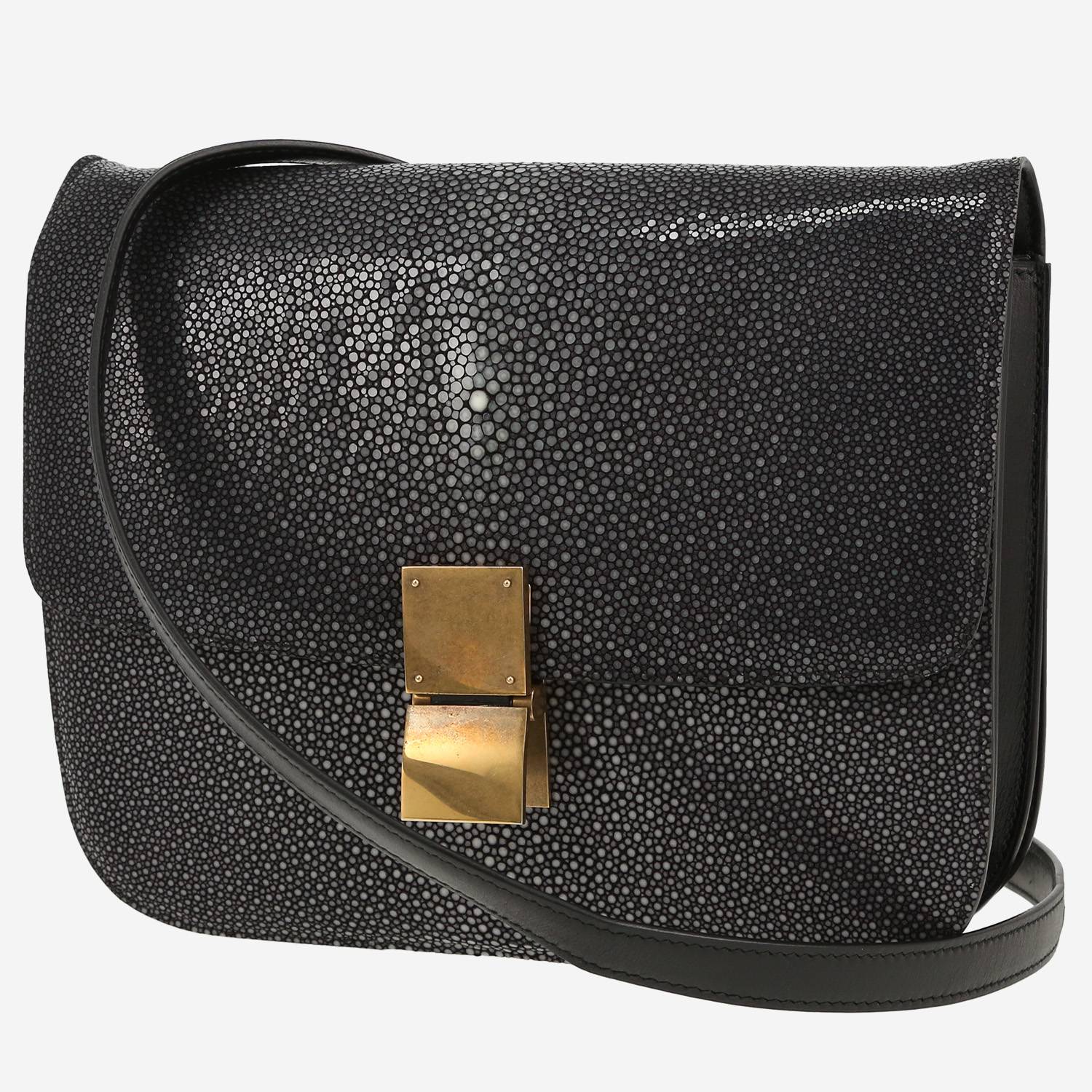 Borsa a tracolla Celine Classic Box in galuchat grigia e pelle nera Ref Replica Handbag and Jewelry Shopping: 42 80 95