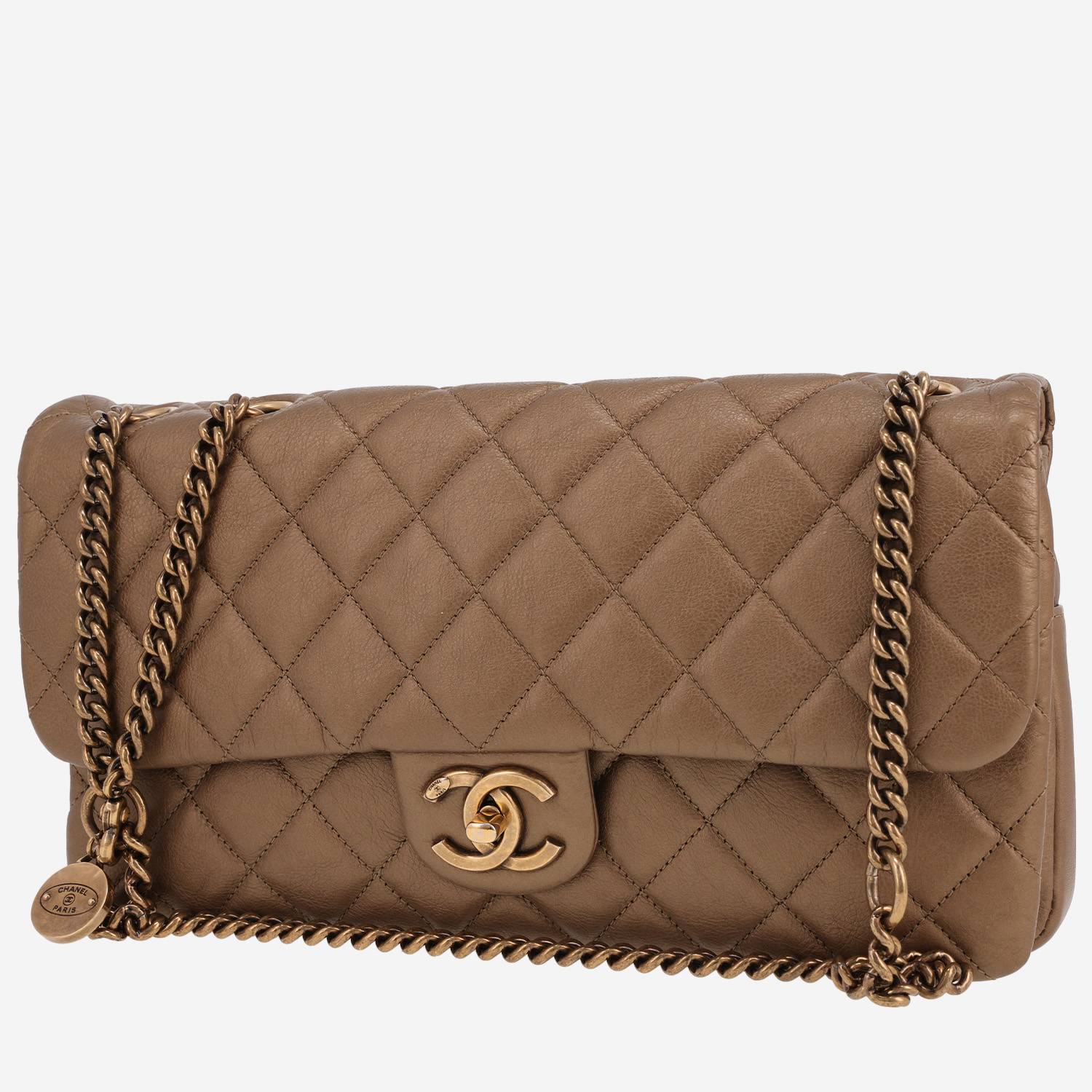 Magnifica borsa Chanel in pelle trapuntata mordoré, inserti in metallo dorato, una tracolla a catena in metallo dorato da portare a mano o in spalla.