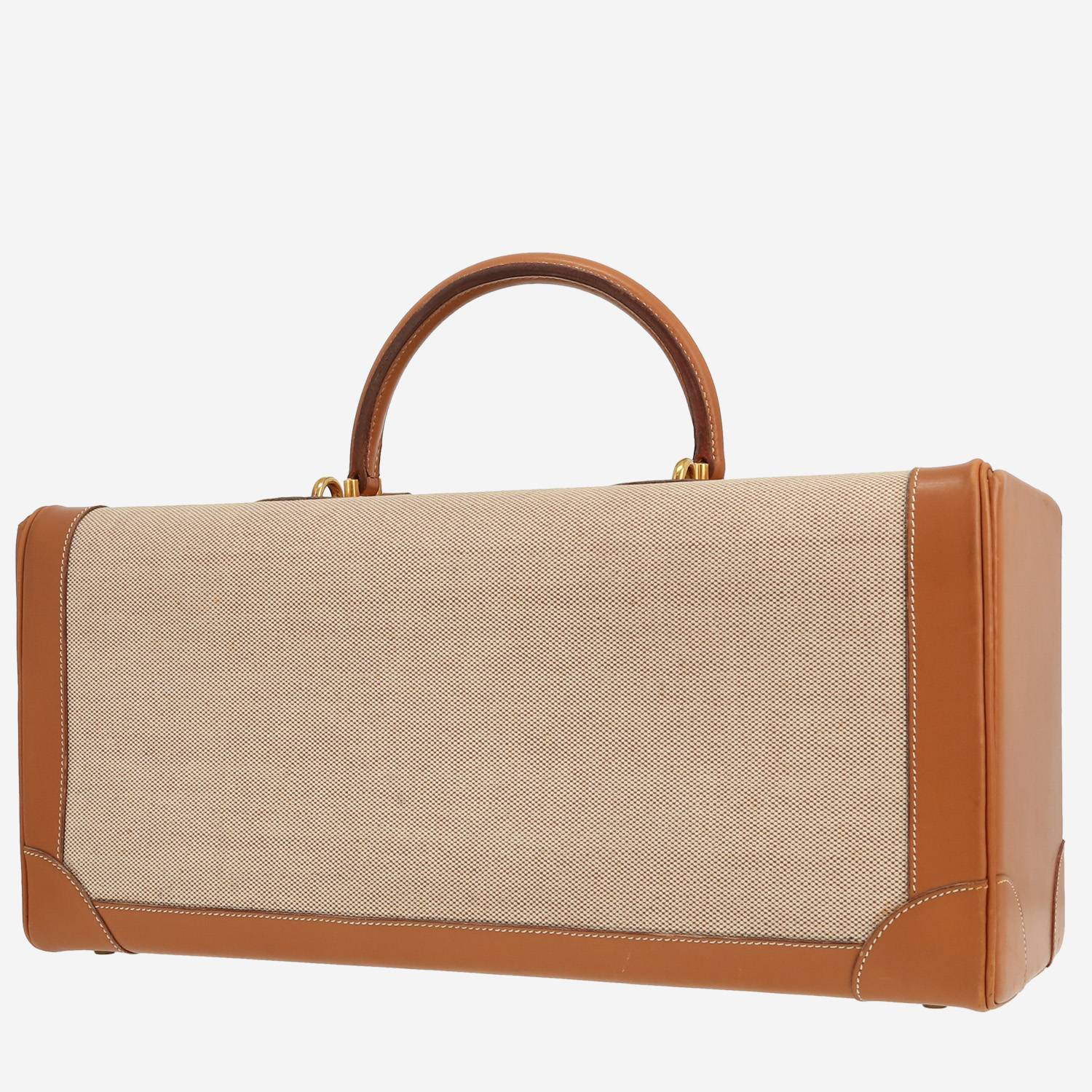 Borsa portadocumenti Hermès in tela "H" e pelle marrone, inserti in metallo dorato, manico semplice in pelle marrone da portare a mano.