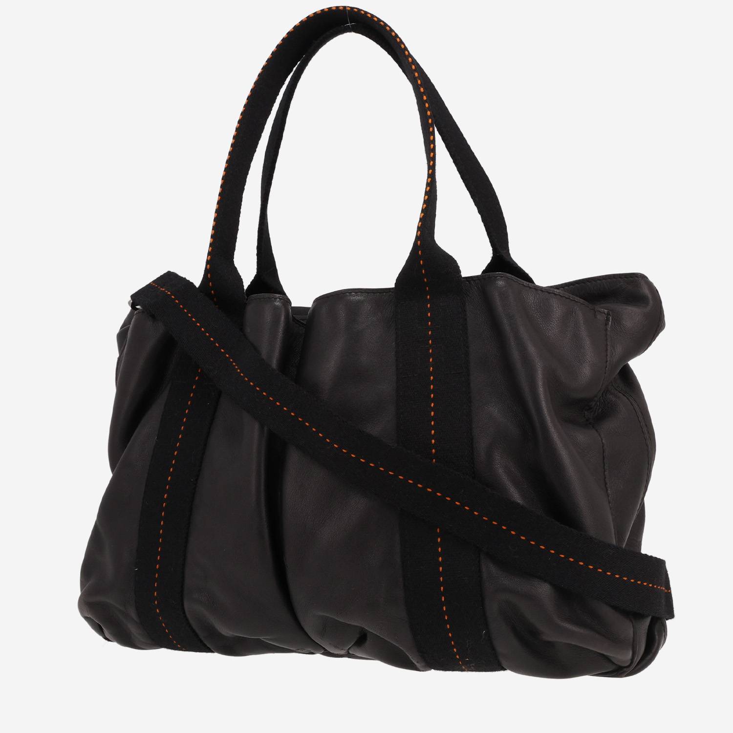 Straordinaria borsa Hermès Caravane in pelle Swift nero e tela nera, inserti in palladio, impunture arancioni, doppio manico in tela nera, una tracolla in tela nera da portare a mano, in spalla o a tracolla.
