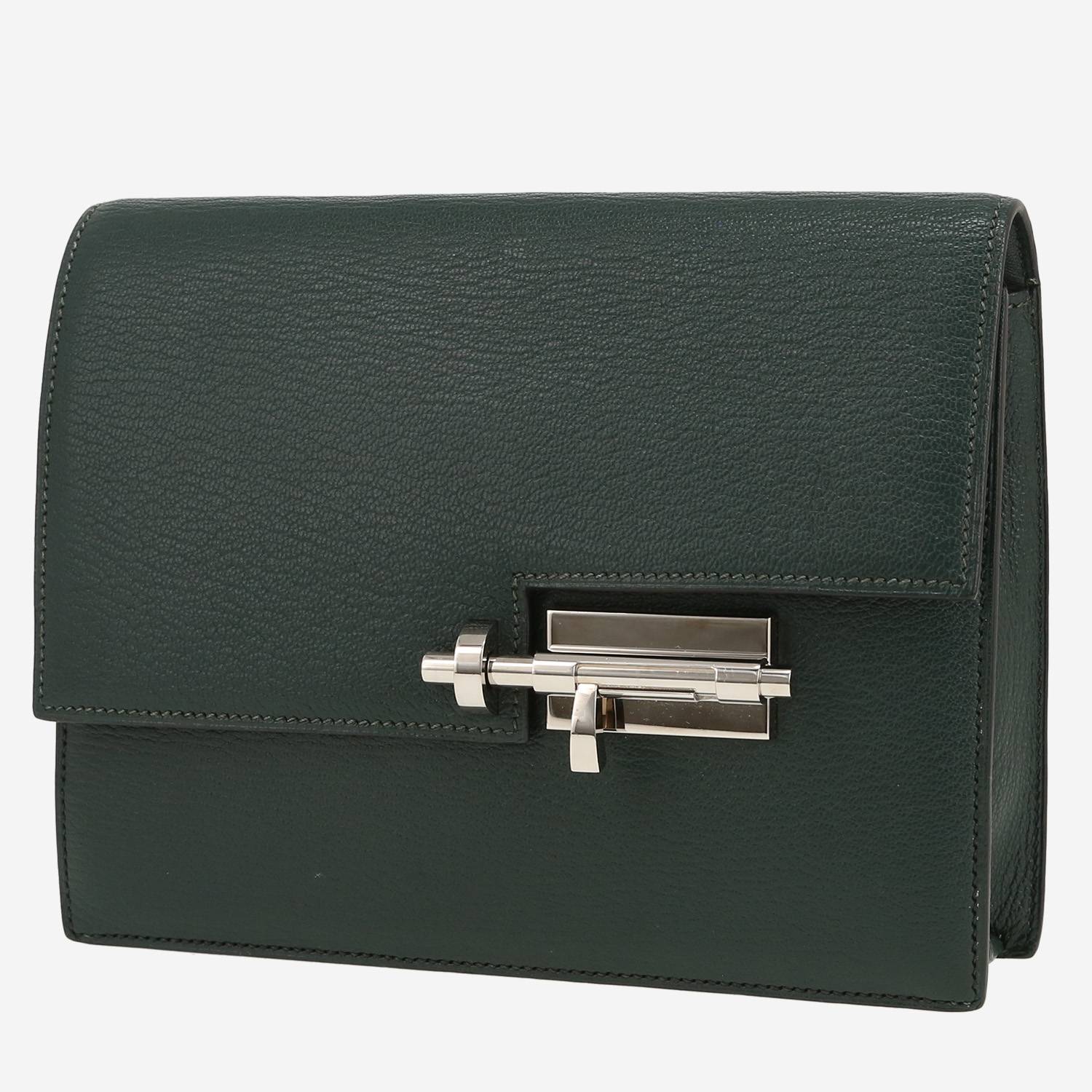 Magnifica pochette Hermès Verrou in pelle Mysore verde, inserti in palladio.
