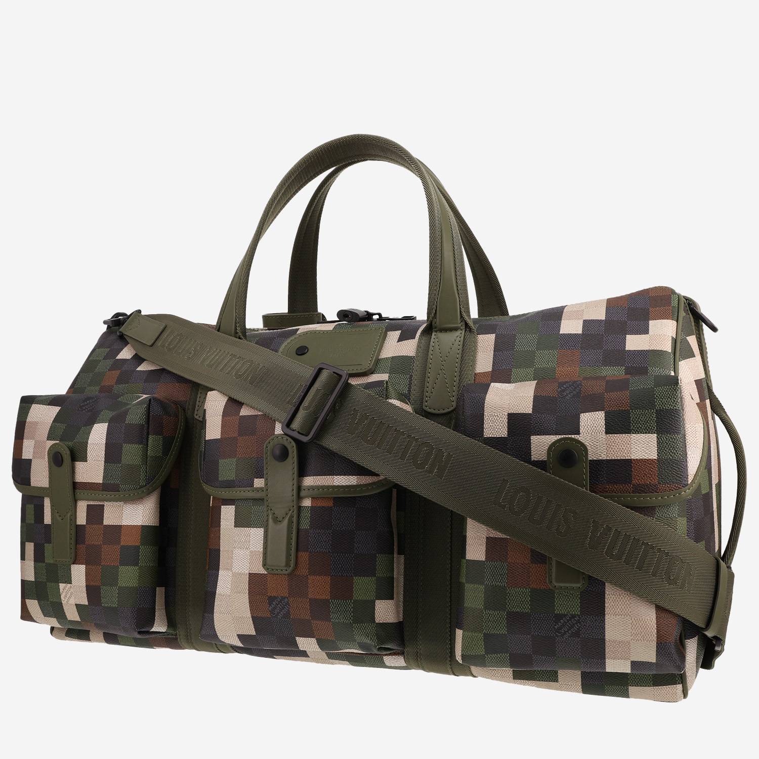 Borsa da viaggio Louis Vuitton Keepall Editions Limitées in tela a scacchi verde marrone e nera Ref Replica Handbag and Jewelry Shopping: 42 99 50