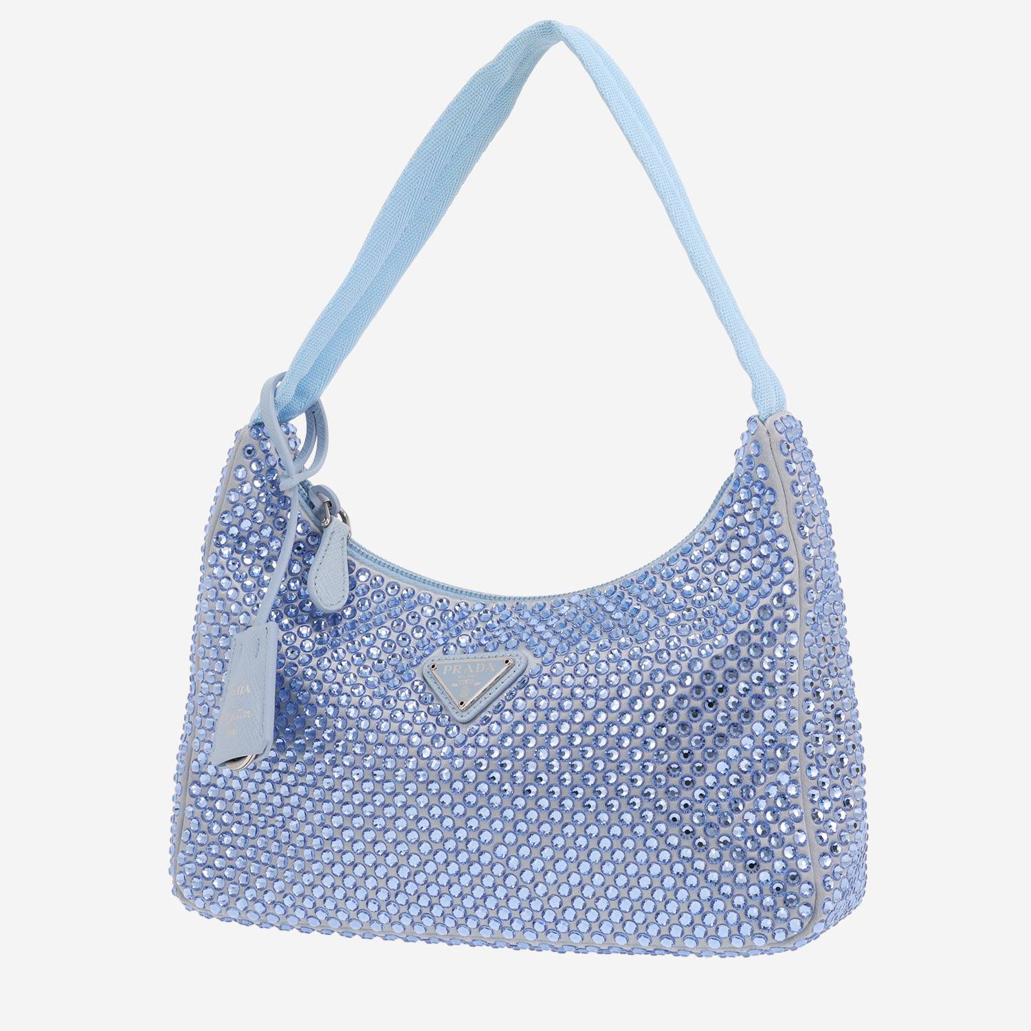 Borsa Prada Re-Edition 2000 in tela blu con cristalli Ref Replica Handbag and Jewelry Shopping: 42 97 45