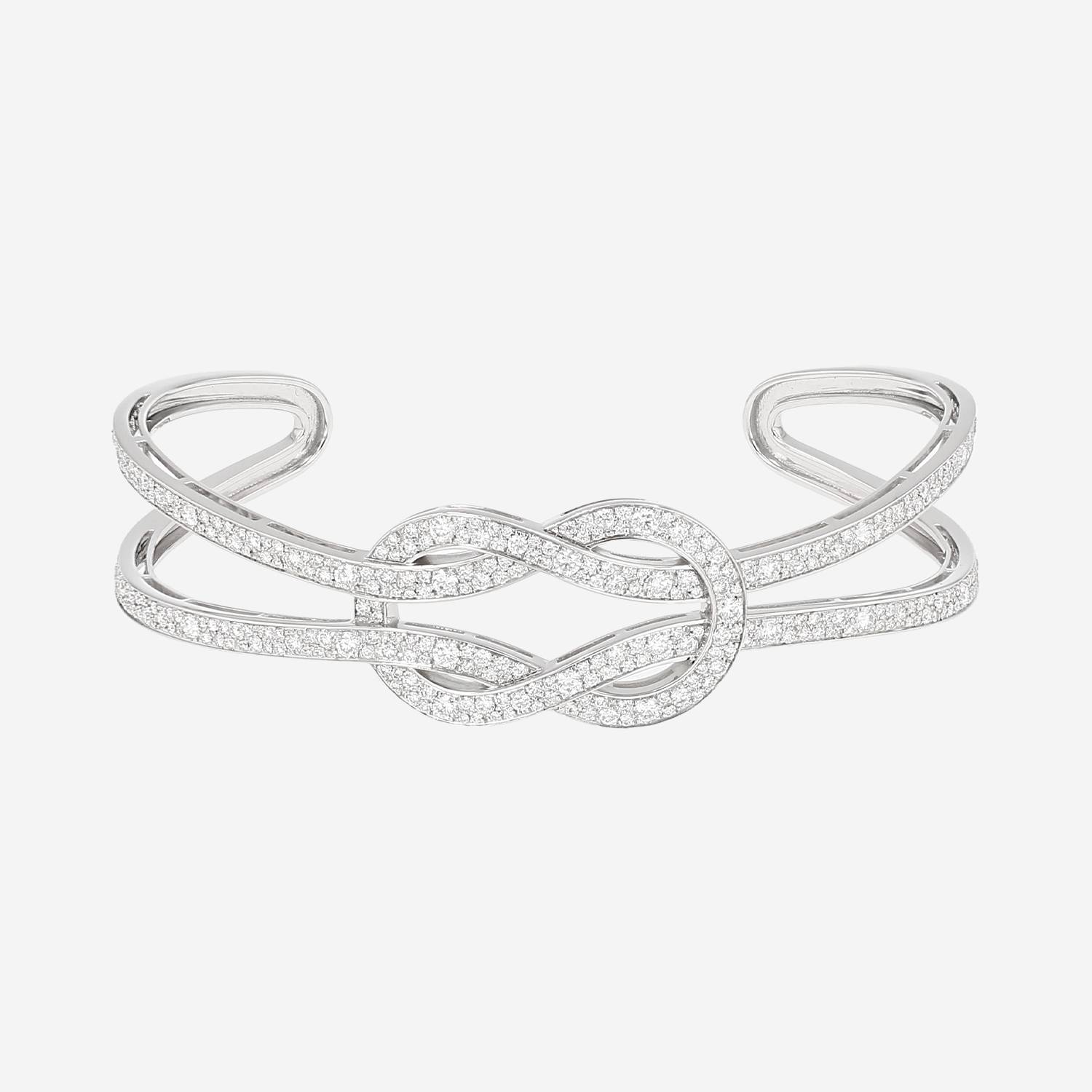 Bracciale a cerchio Fred Chance Infinie in oro bianco e diamanti, dotato di il motivi a forma di 8 che simboleggiano l'infinito traforate in oro bianco interamente incastonati di diamanti con taglio a brillante 2.78 carati di totale.