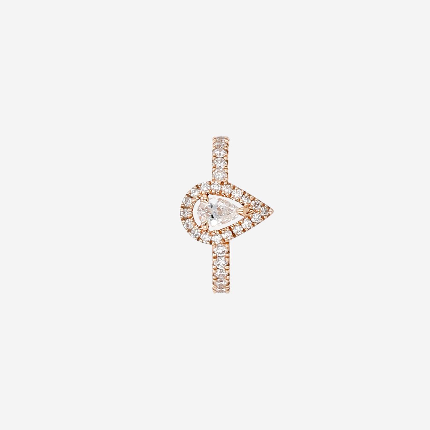 Gioiello per orecchio Messika My Twin in oro rosa e diamanti, composta da un montatura in oro rosa incastonata di diamanti con taglio a brillante 0.18 carati di circa, ornata al centro da un motivo piriformi traforato tempestato di diamanti con taglio a brillante arricchito da un diamante con taglio a pera di 0,10 carati.