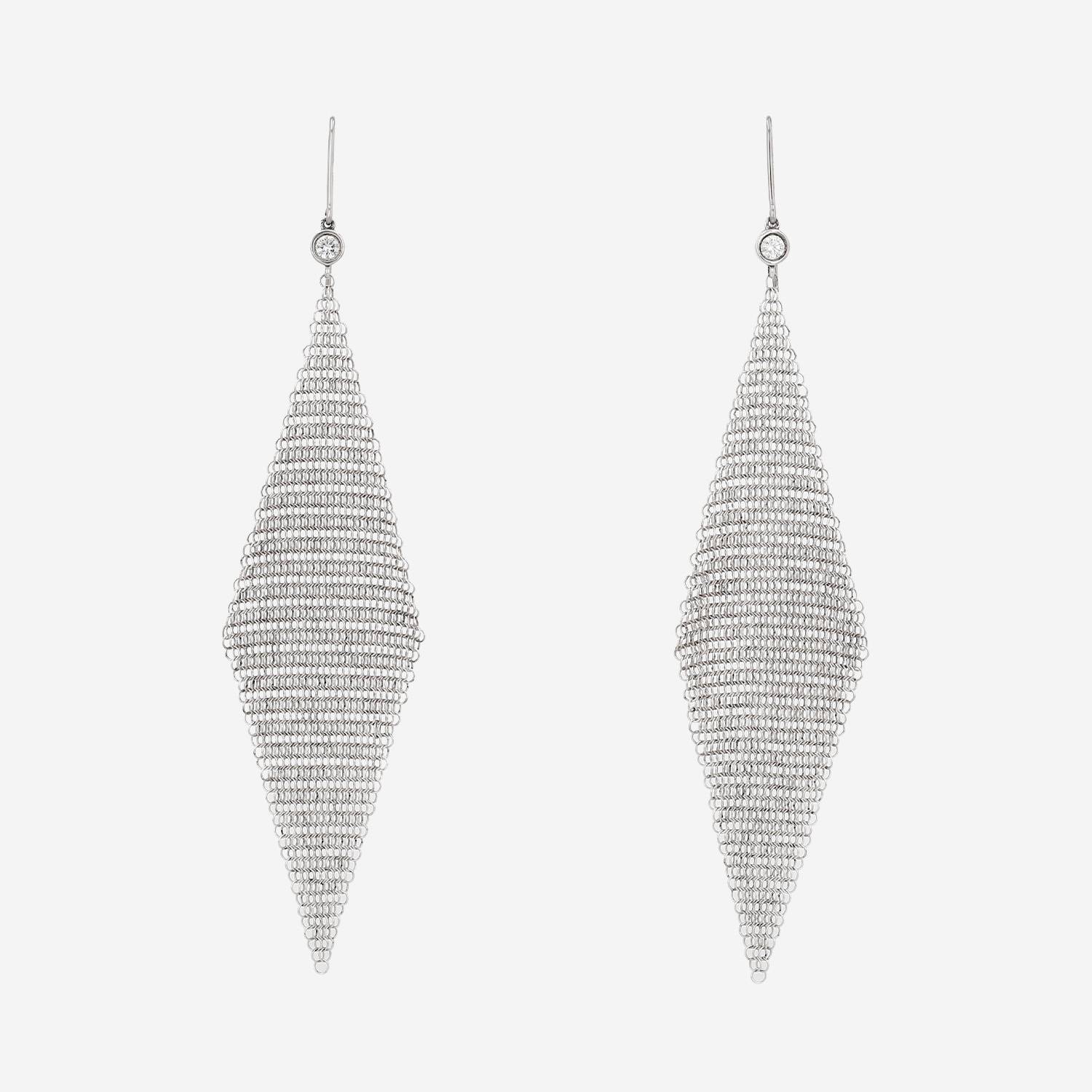 Orecchini Tiffany Co Elsa Peretti in argento e diamanti, composti da una maglia in argento, arricchiti da un diamante con taglio a brillante circa 0.05 carati.