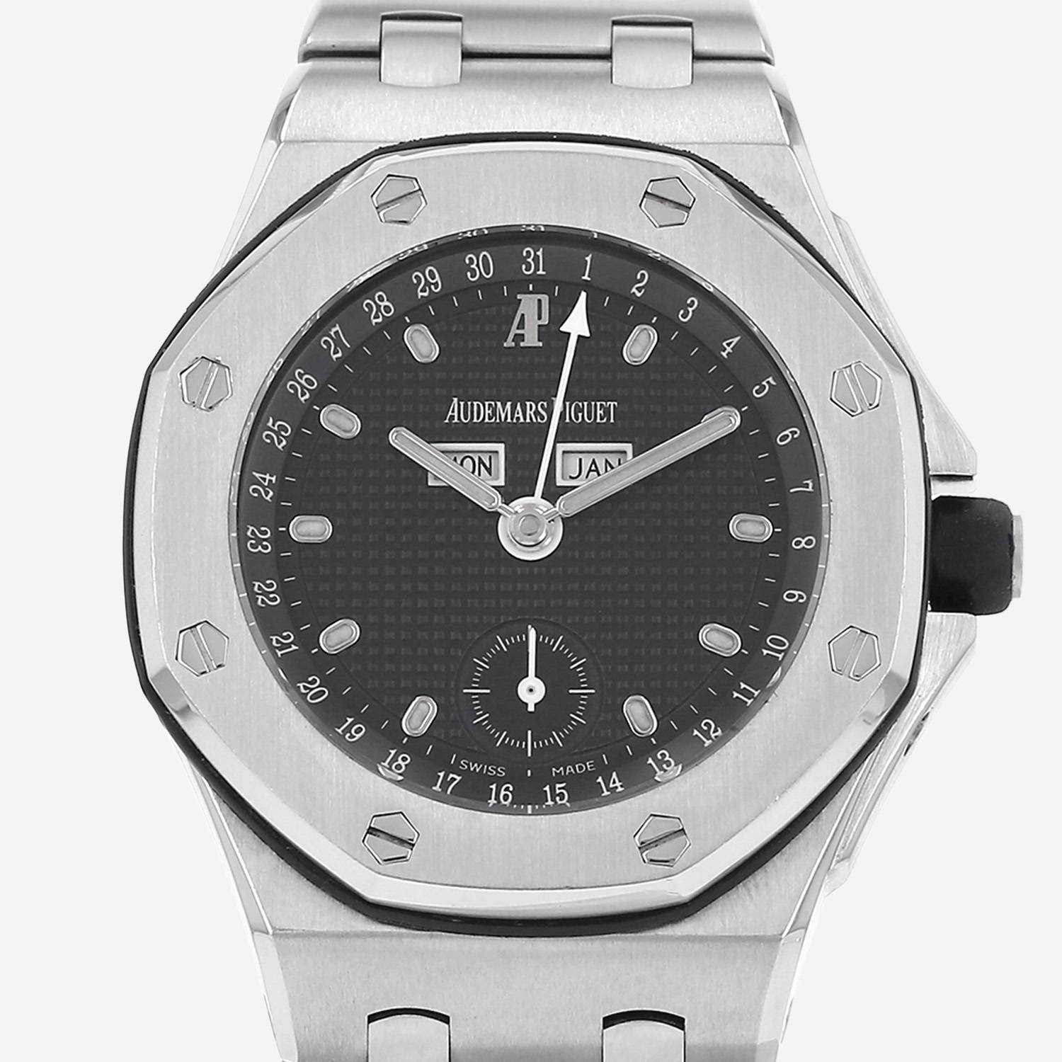 Orologio da polso Audemars Piguet Royal Oak Offshore Calendar in acciaio. Cassa ottagonale in acciaio, fondo cassa avvitato, lunetta avvitata, corona a vite.