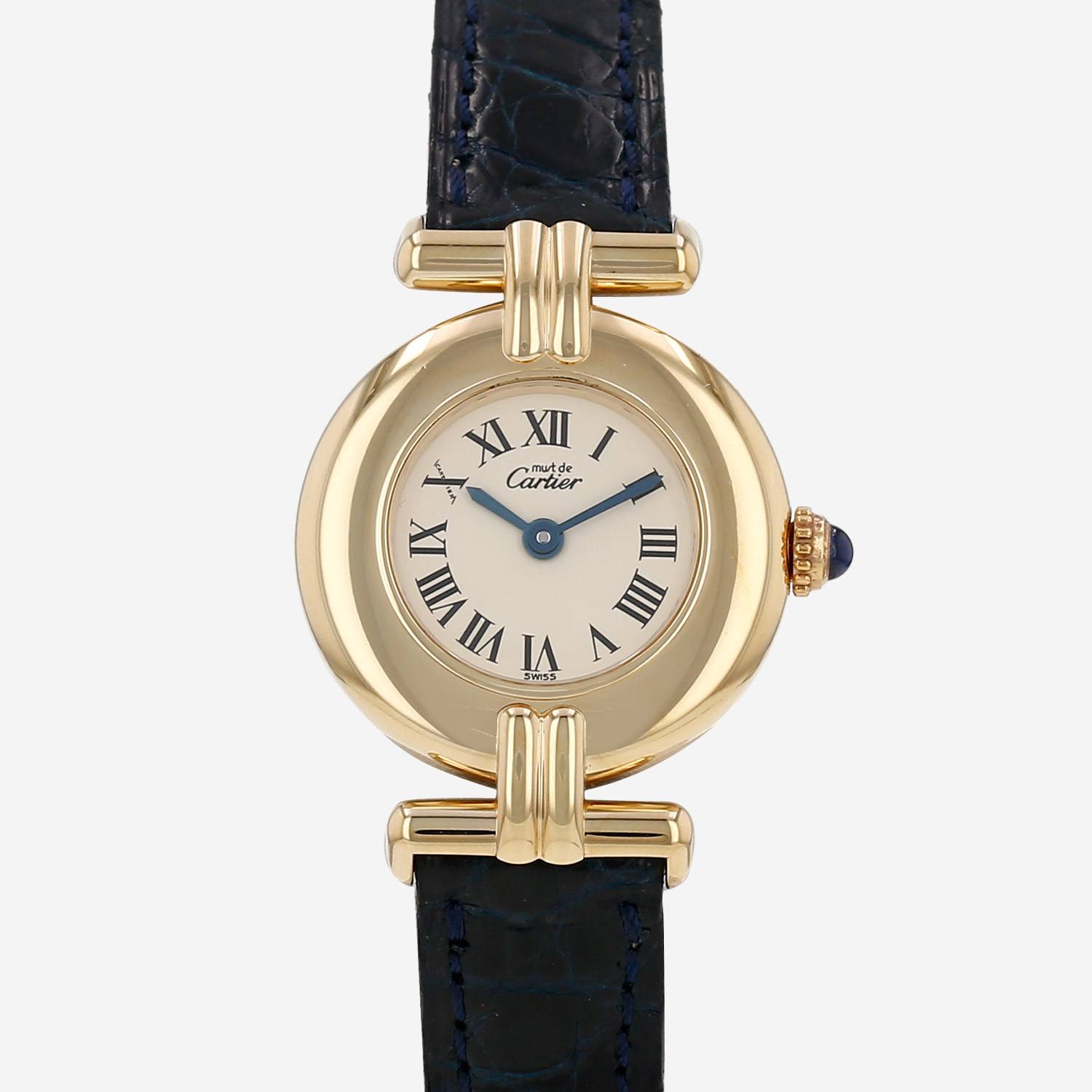 Orologio da polso Cartier Must Colisée in vermeil. Cassa rotonda in vermeil, fondo cassa fissato con clip, corona scanalata incastonata con un cabochon in zaffiro.