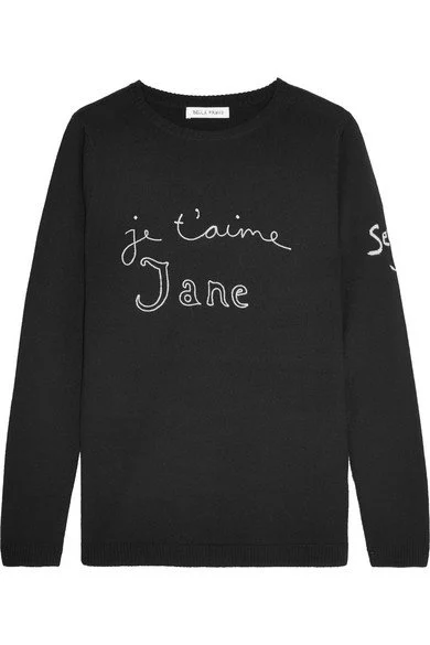 Net-A-Porter has all your Bella Freud candle needs and a new stock of the iconic and classic “Je T’Aime Jane” sweater online now.