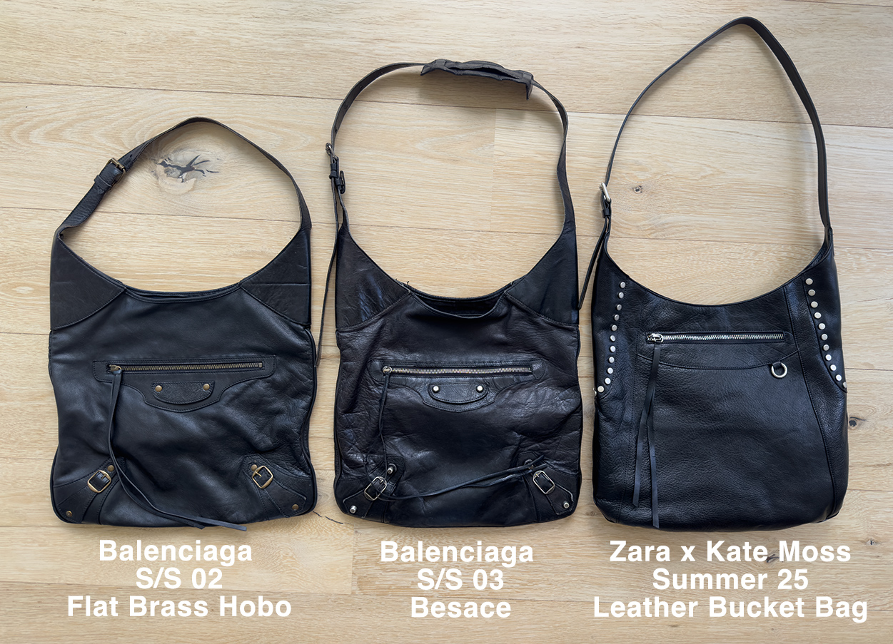 A while ago, I was able to find my own Balenciaga Flat Brass Hobo and Besace, so buying this Kate Moss x Zara Bucket Bag was a little indulgent.