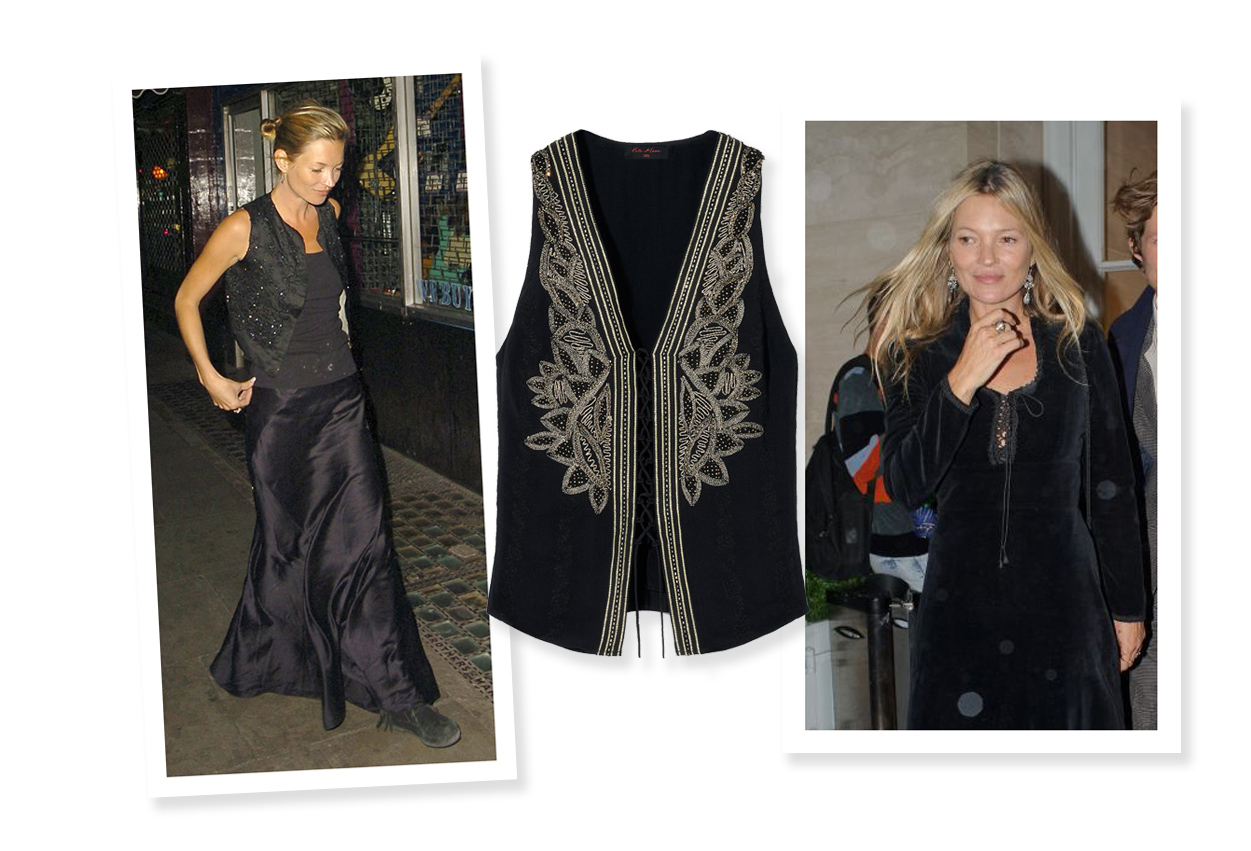 While it is rooted in Kate’s own wardrobe (from Chloé-esque jeans to that 1994 Bella Freud fringed bikini, and, of course, the iconic Moschino bag she carried at Glastonbury from 03-05), this collection heavily pulled inspiration from Kate’s own muse.