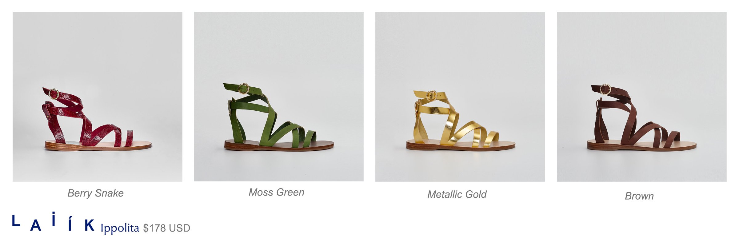 –Handmade in Greece: Laiik uses 3rd generation craftspeople to make their sandals in Greece.