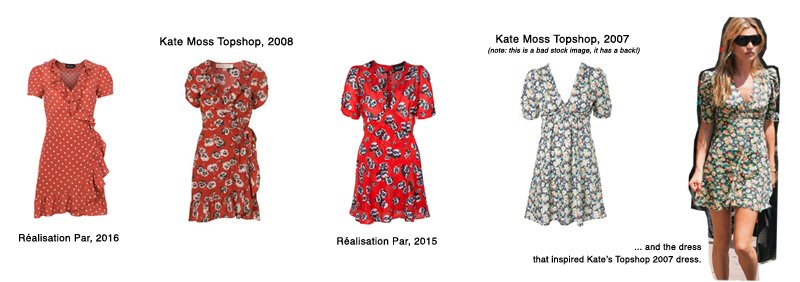 They’ve seemingly taken two Kate Moss Topshop dresses from 2007 & 2008 and remade them in new prints and in 100% silk.