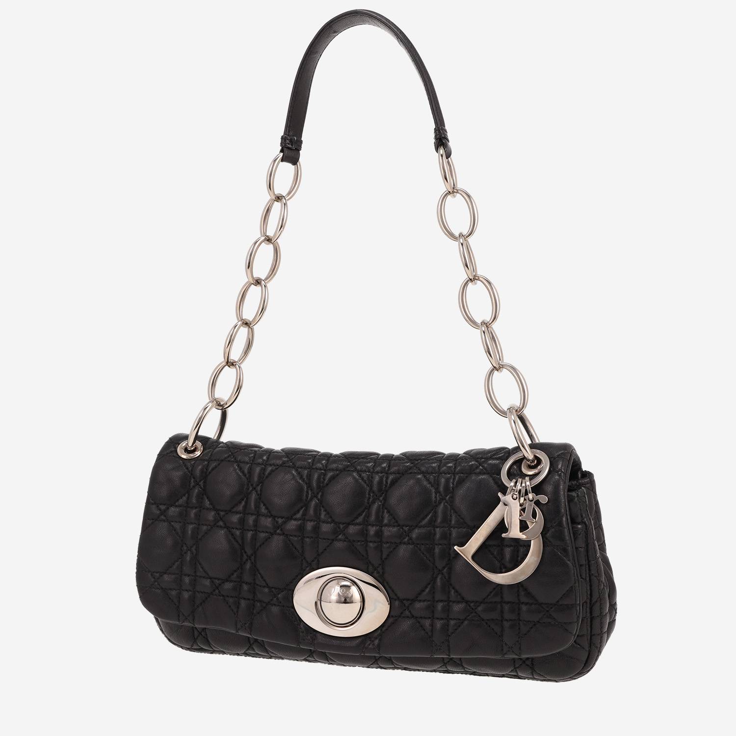 Ravissant sac à main Dior Rendez-vous en cuir cannage noir, garniture en métal argenté, une anse-chaine en métal argenté permettant un porté main ou épaule.